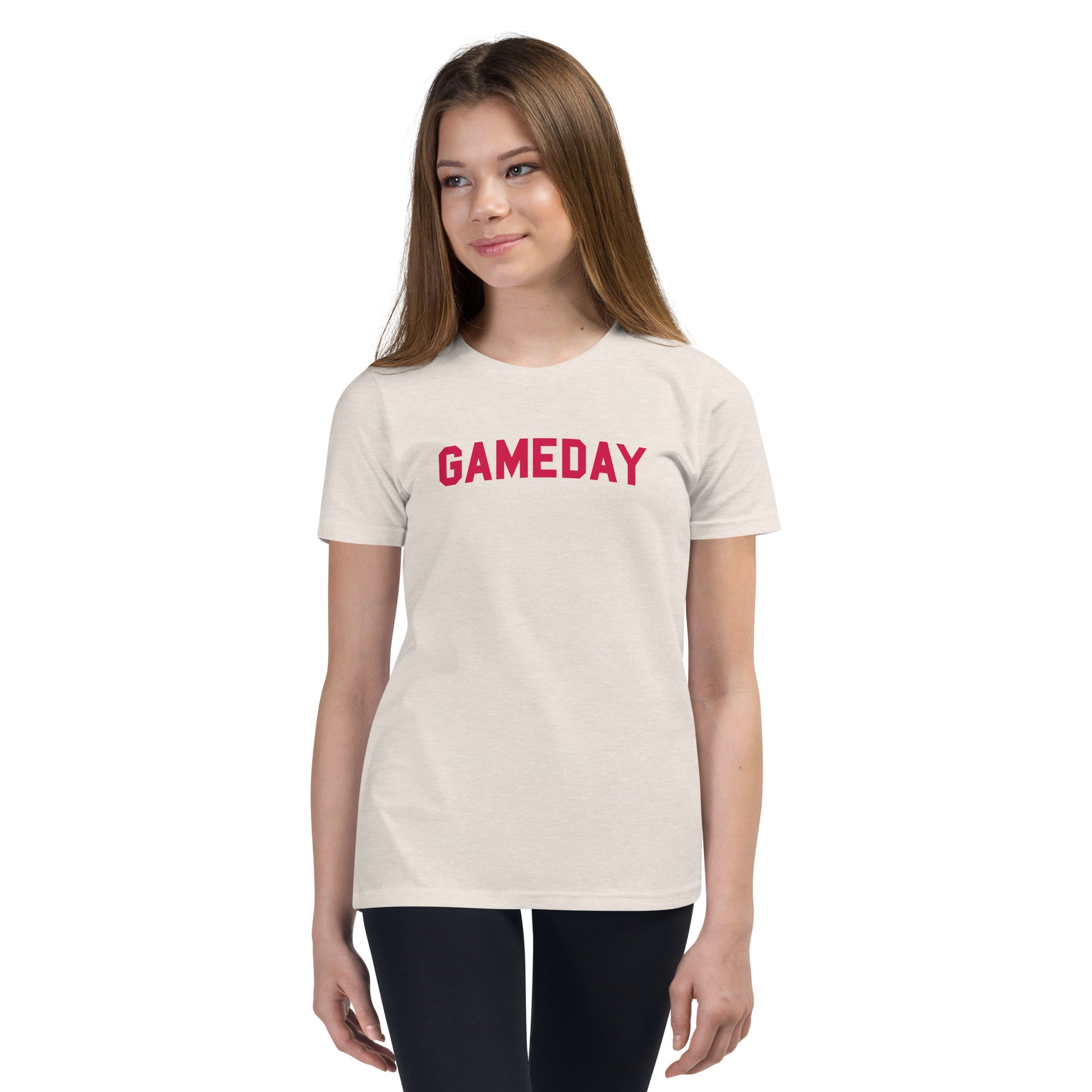 Ignite your young Badger's spirit with our premium youth Badger Game Day t-shirt. This eye-catching design features bold "GAMEDAY" text emblazoned across the chest in vibrant Wisconsin red, perfectly capturing the electric atmosphere and unwavering passion of Badger football that's ideal for passing down to the next generation of fans.