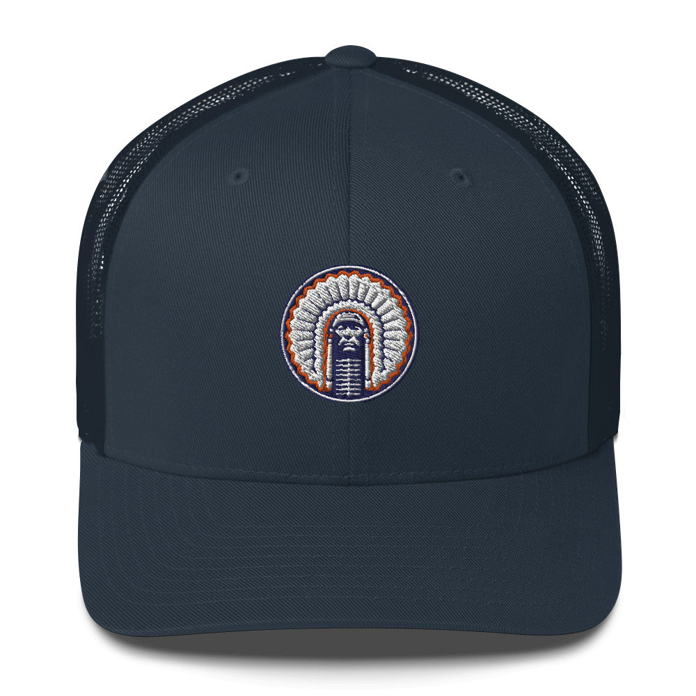 Crafted with a perfect blend of style, comfort, and durability, this trucker hat pays homage to the rich legacy of the Fighting Illini. The structured front panel proudly displays an embroidered Chief Illiniwek logo in the school's iconic orange and blue colors, that has become synonymous with generations of excellence on and off the field.