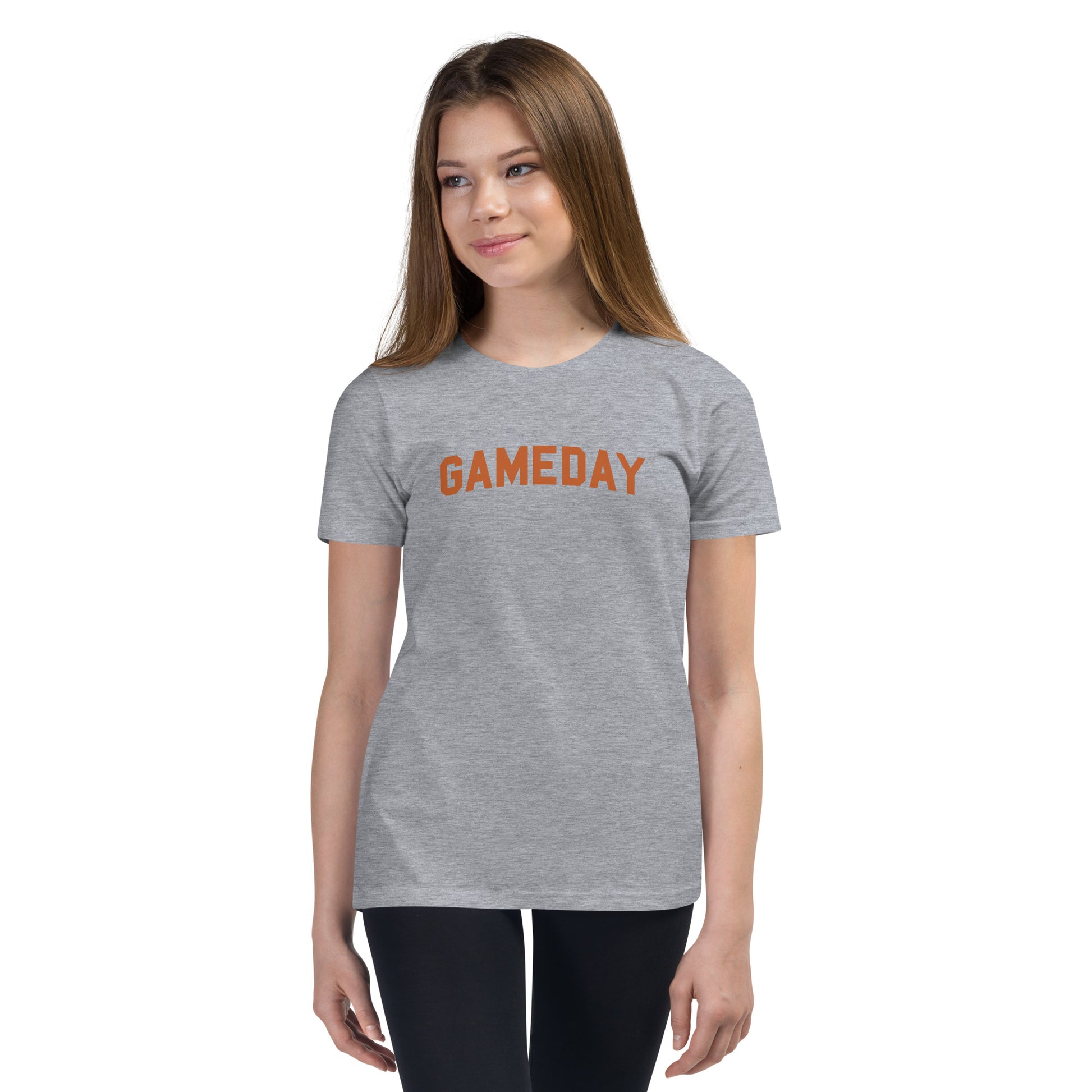 Ignite your young Longhorn's spirit with our premium youth "Texas GameDay" t-shirt. This eye-catching design features bold "GAMEDAY" text emblazoned across the chest in vibrant burnt orange, perfectly capturing the electric atmosphere and unwavering passion of Texas football that's ideal for passing down to the next generation of fans.