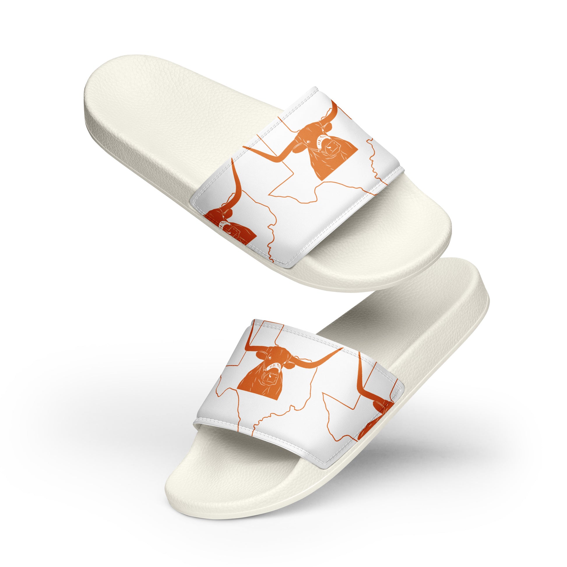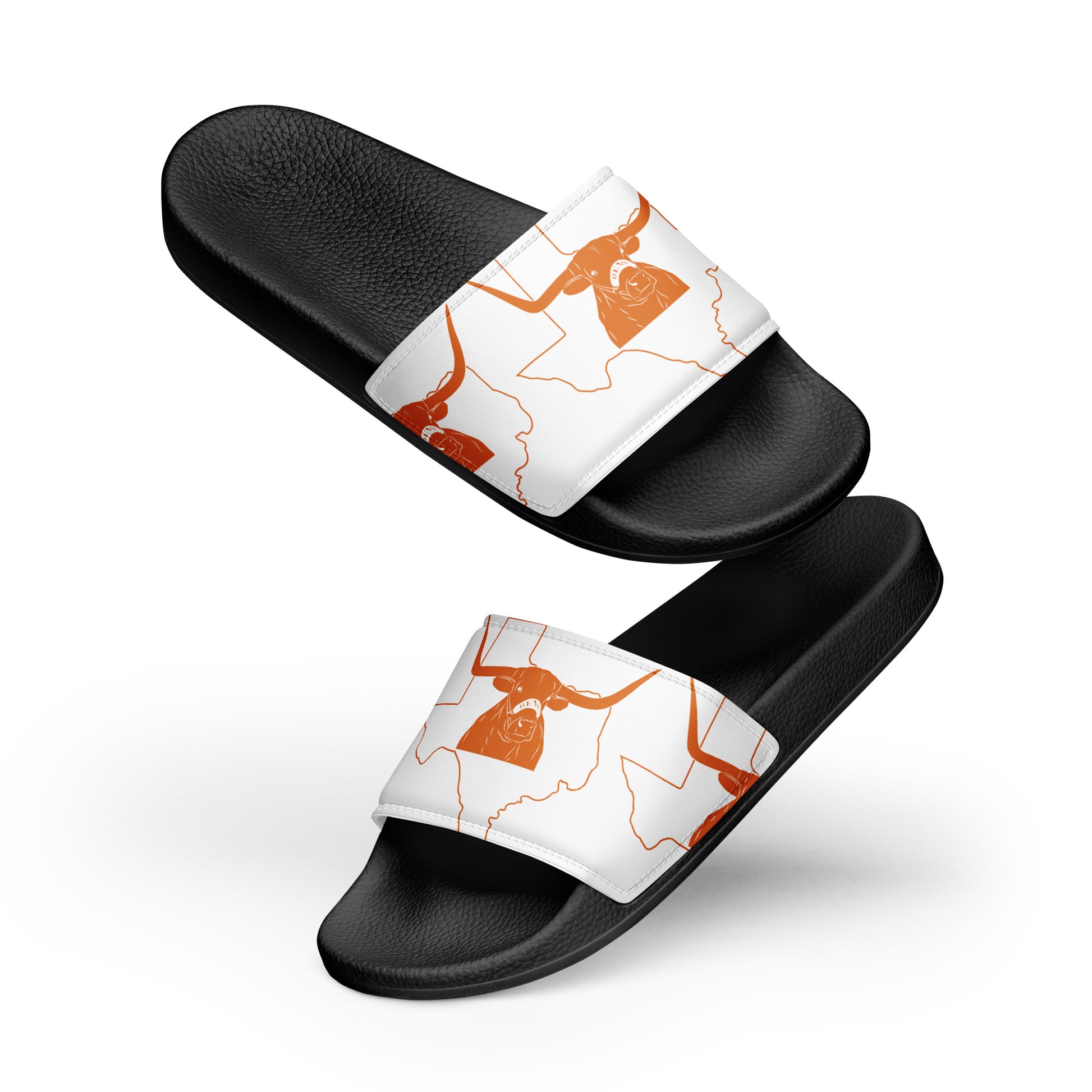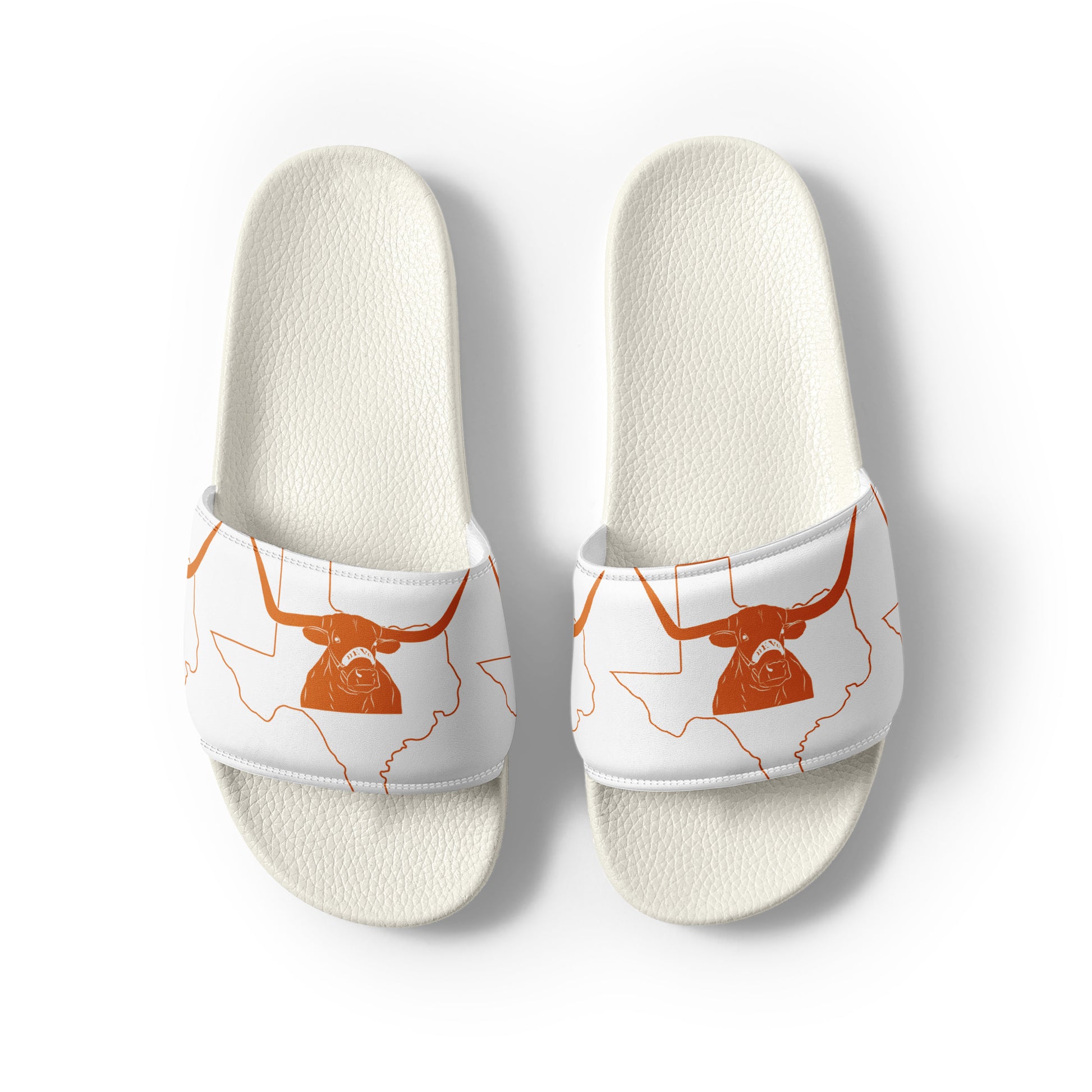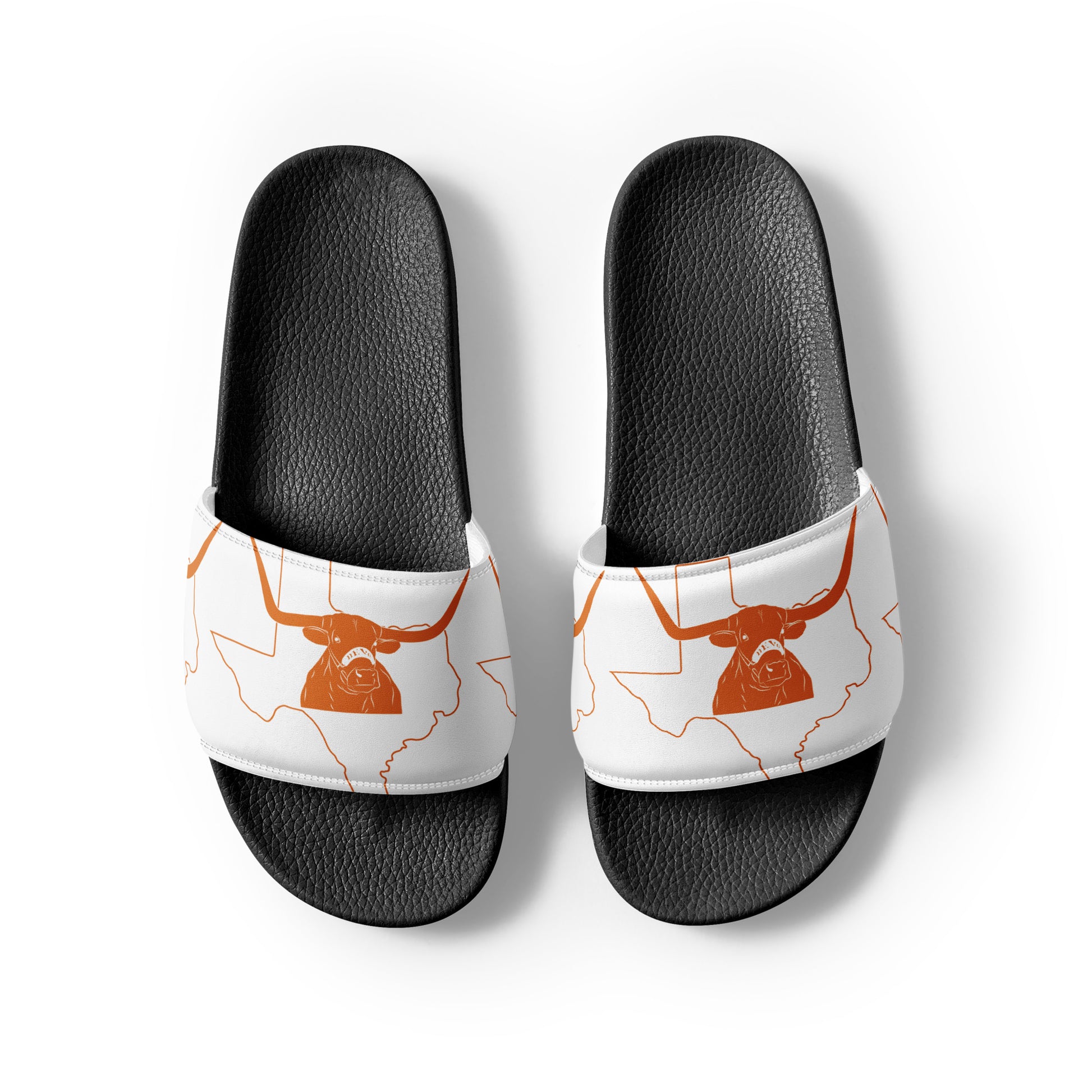 As a proud owner of these premium slides, you'll be carrying on the legacy of the countless University of Texas alumni who have made their mark on the world, from legendary athletes to influential leaders. The iconic Bevo and Texas outline design encapsulates the unrivaled spirit, pride, and excellence associated with the Longhorns, and by wearing these slides, you're declaring your place in that storied history.