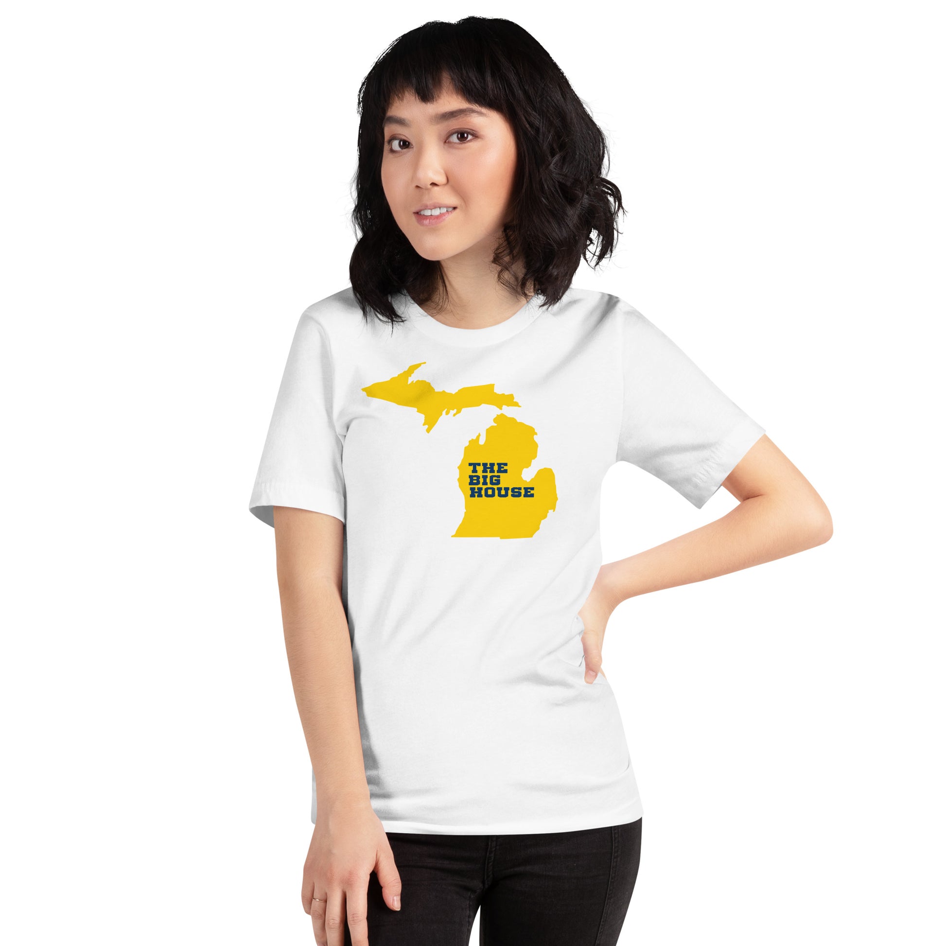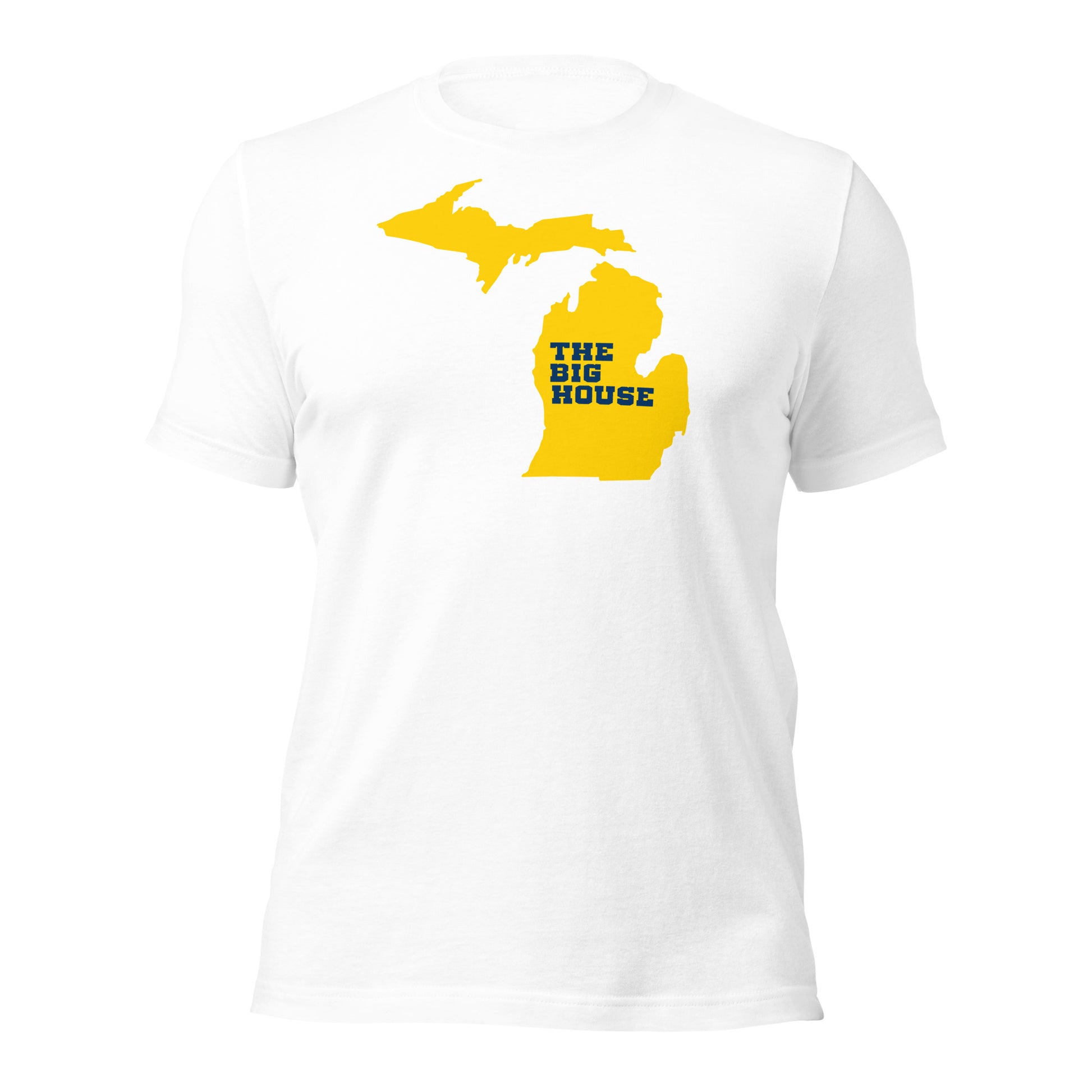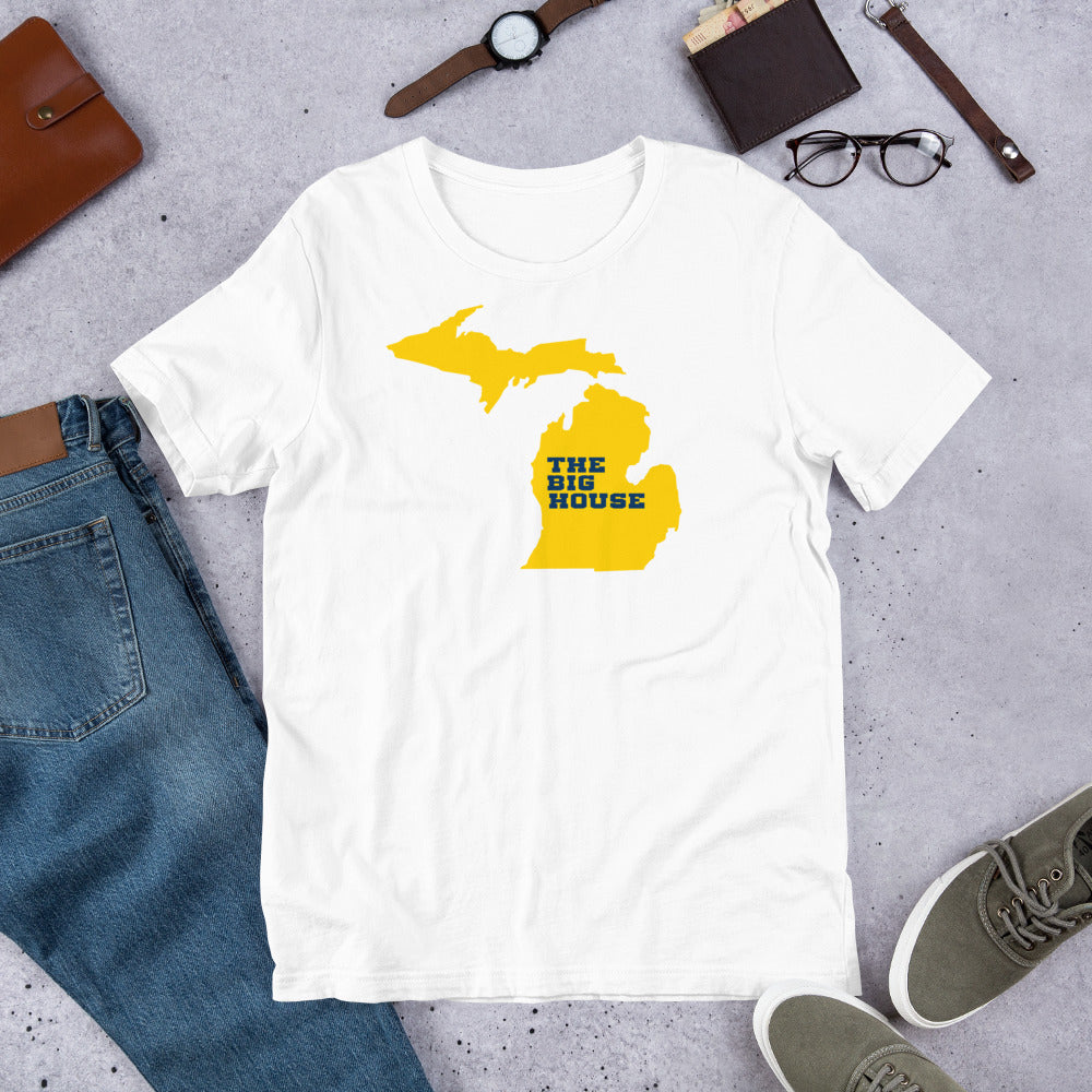 • Bold, screen-printed design featuring the Michigan state outline and "The Big House" text
