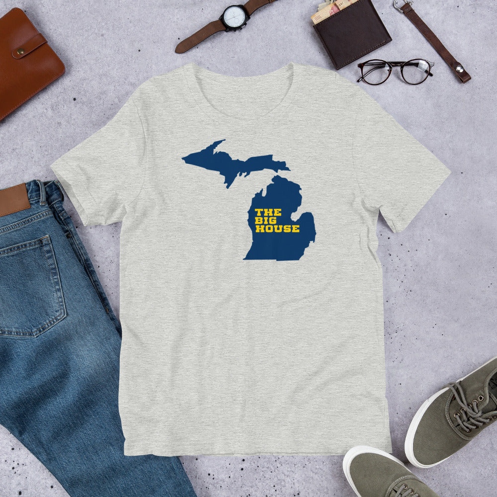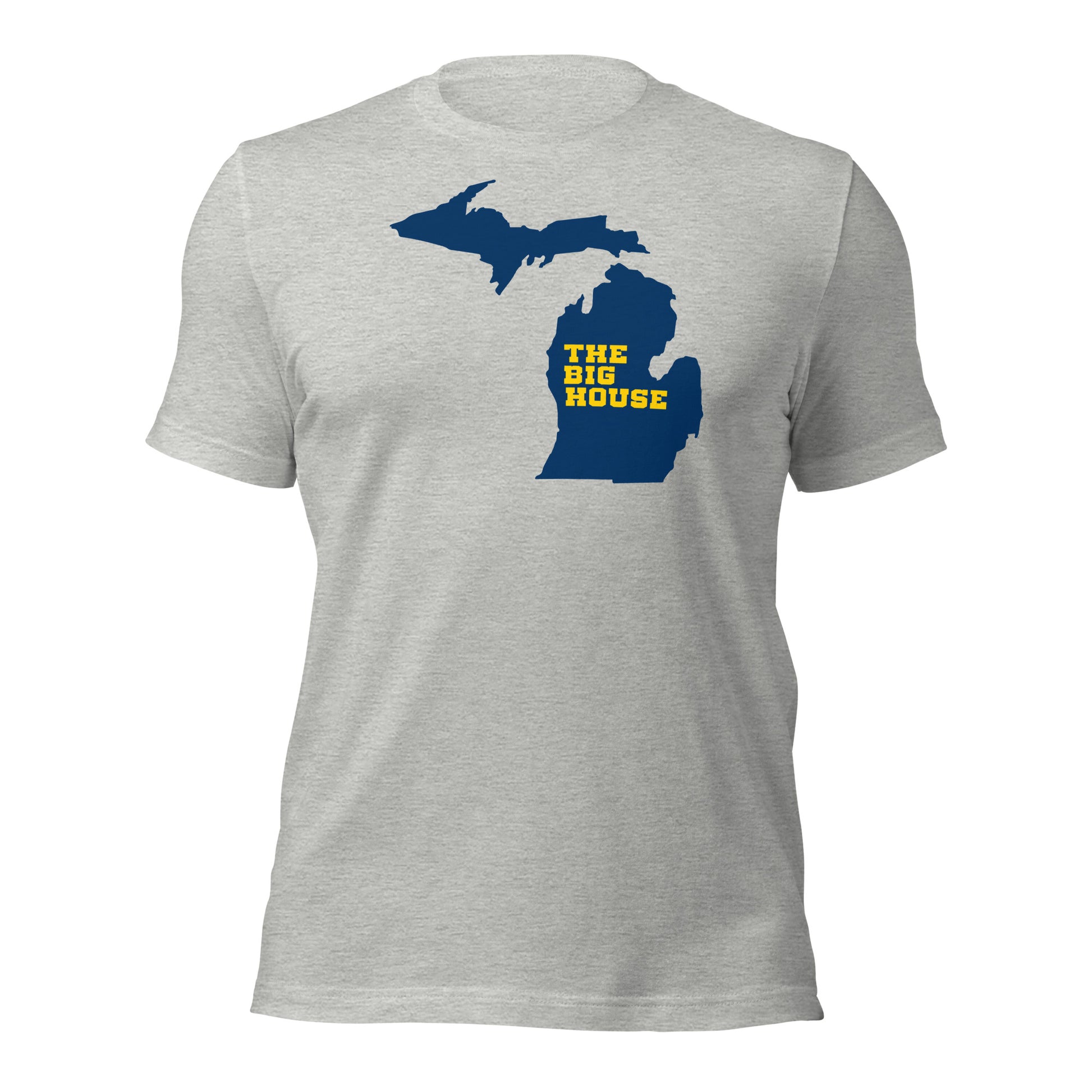 - Bold, screen-printed design featuring the Michigan state outline and "The Big House" text