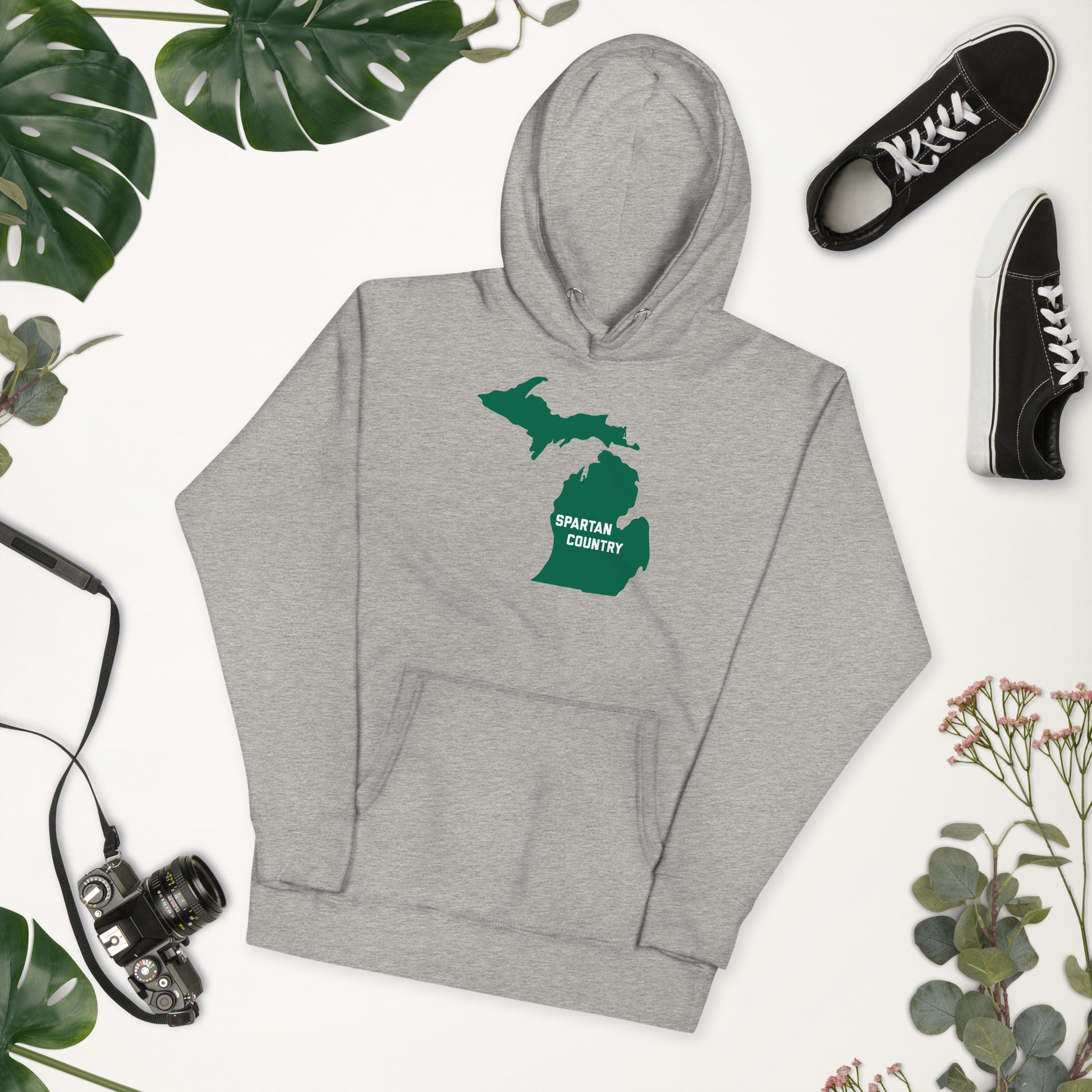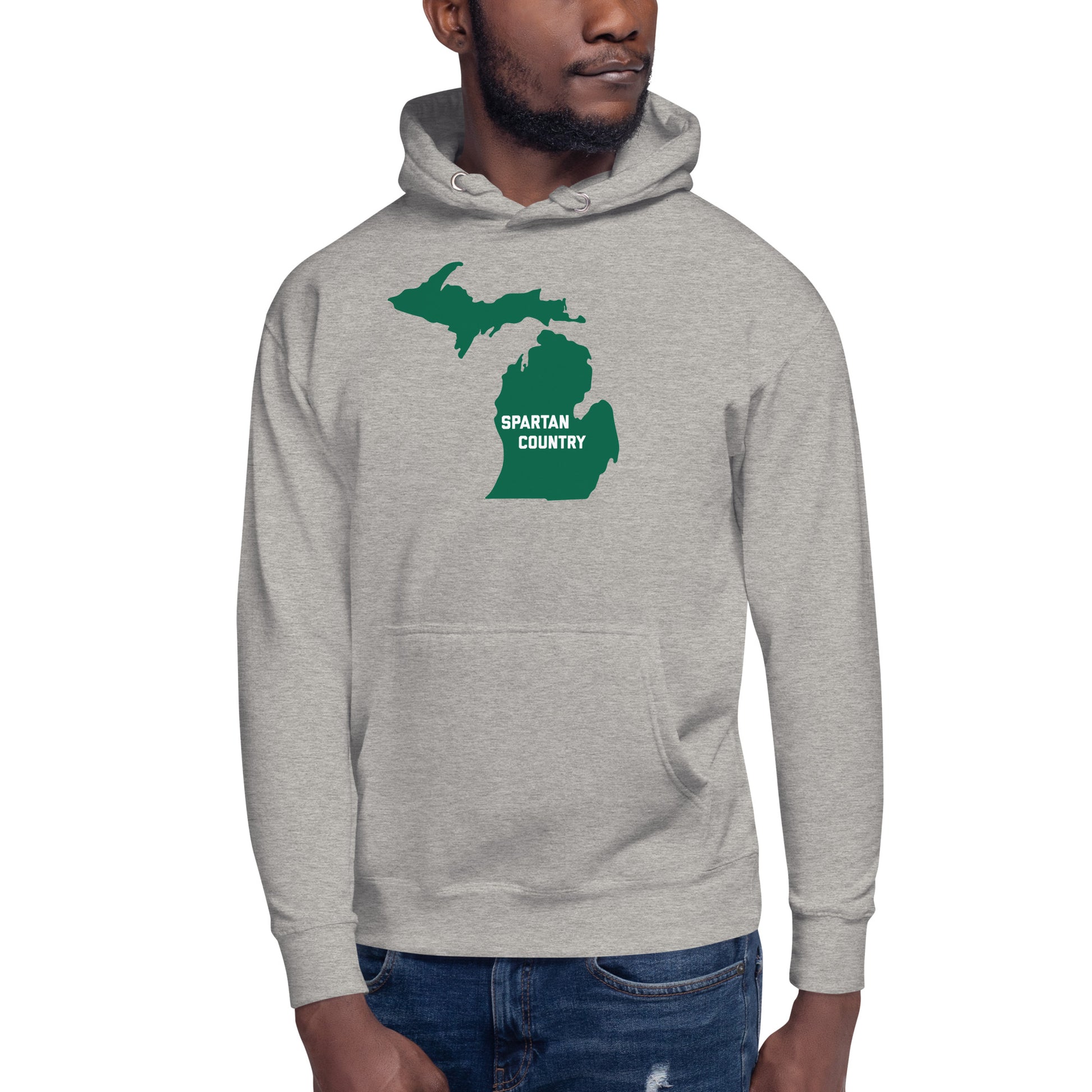 • Vibrant, screen-printed design featuring the Michigan state outline and "Spartan Country" text