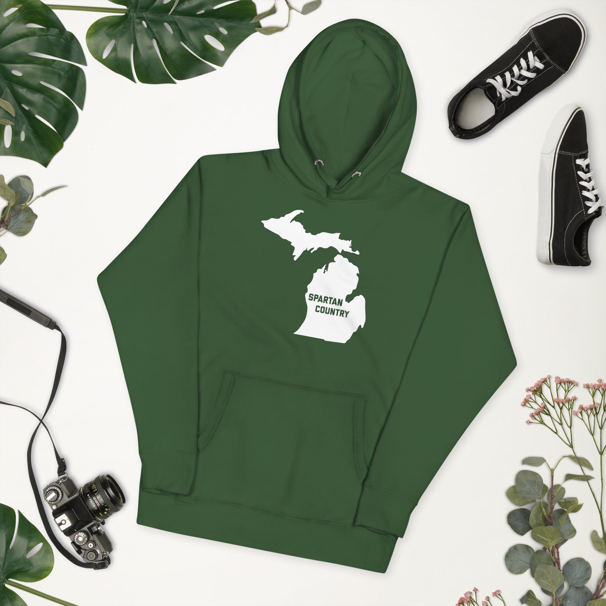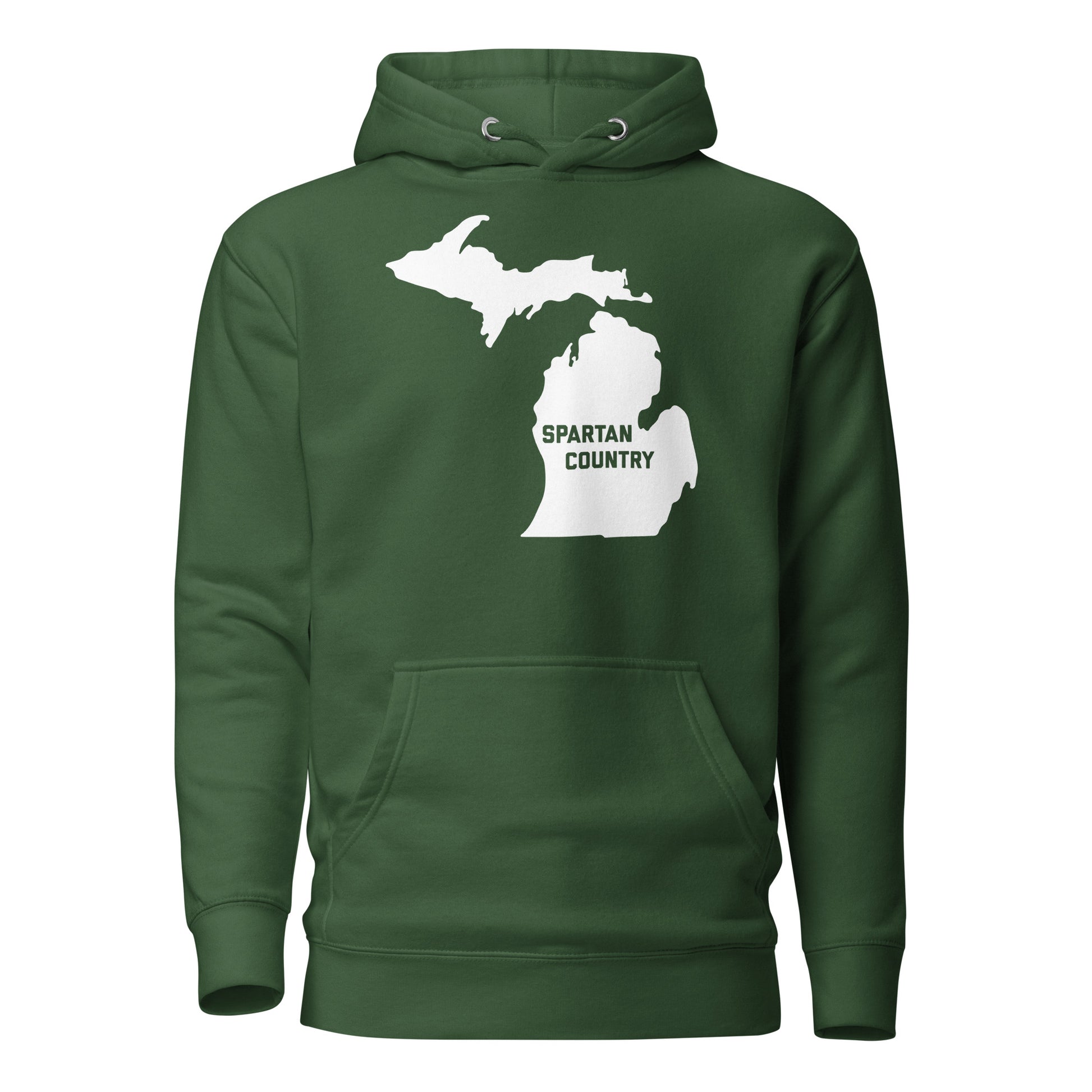 - Vibrant, screen-printed design featuring the Michigan state outline and "Spartan Country" text