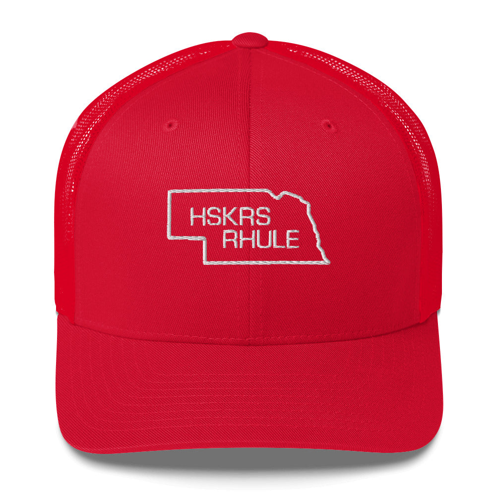 Meticulously crafted using top-quality materials, this premium trucker hat features a structured front panel with the eye-catching "HSKRS RHULE" design, showcasing the iconic Nebraska red and white colors. The adjustable snapback closure ensures a comfortable and personalized fit for any die-hard Husker enthusiast, while the breathable mesh back keeps you cool and refreshed during those intense game day moments.