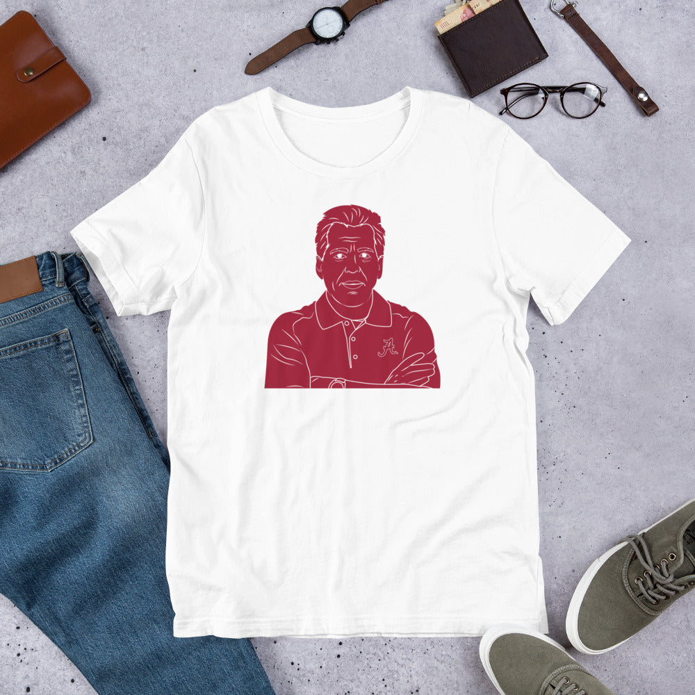 Whether you're a longtime Crimson Tide faithful or a new fan drawn to Alabama's winning tradition, this Nick Saban t-shirt is the perfect way to showcase your allegiance. The striking design is sure to spark conversations and connect you with other passionate Alabama supporters who share your appreciation for Coach Saban's unparalleled achievements.