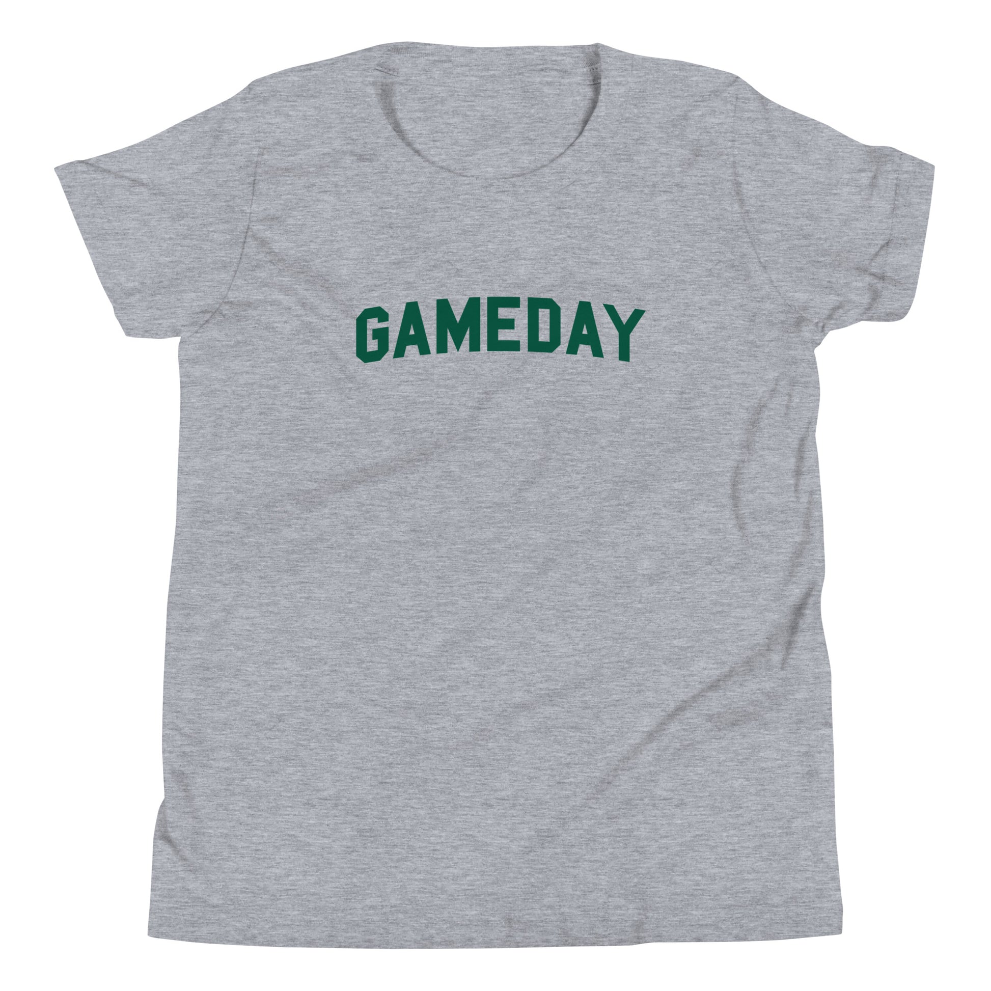 Ignite your young Spartan's spirit with our premium youth Spartan Game Day t-shirt. This eye-catching design features bold "GAMEDAY" text emblazoned across the chest in vibrant Spartan green, perfectly capturing the electric atmosphere and unwavering passion of Michigan State football that's ideal for passing down to the next generation of fans.