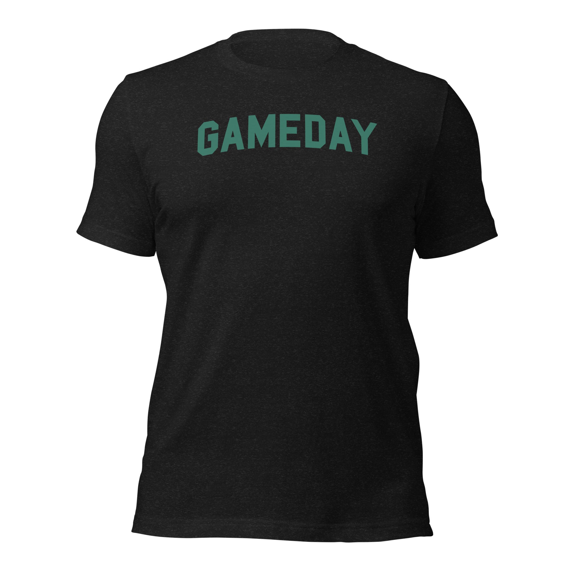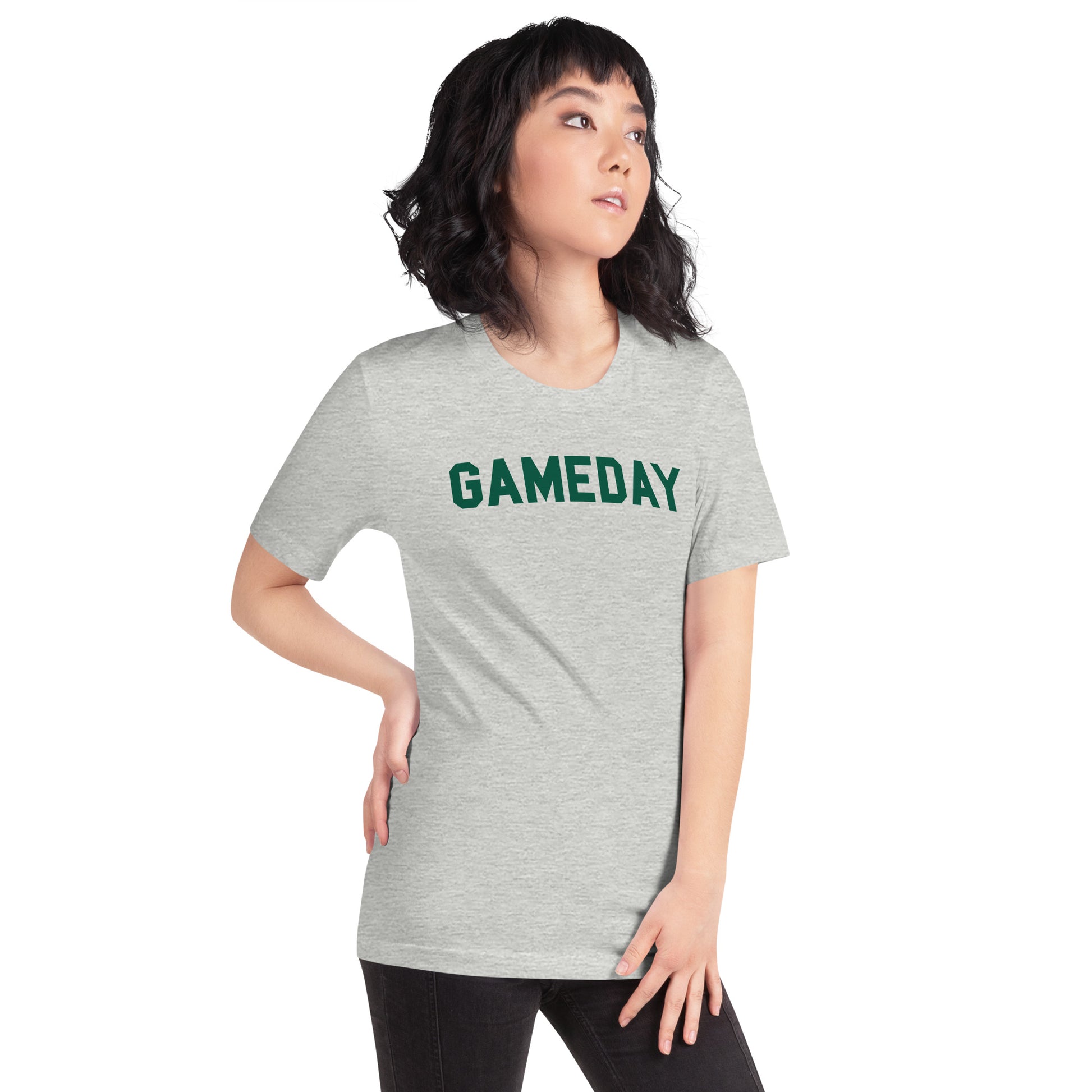 - Bold "GAMEDAY" text design in vibrant Spartan green