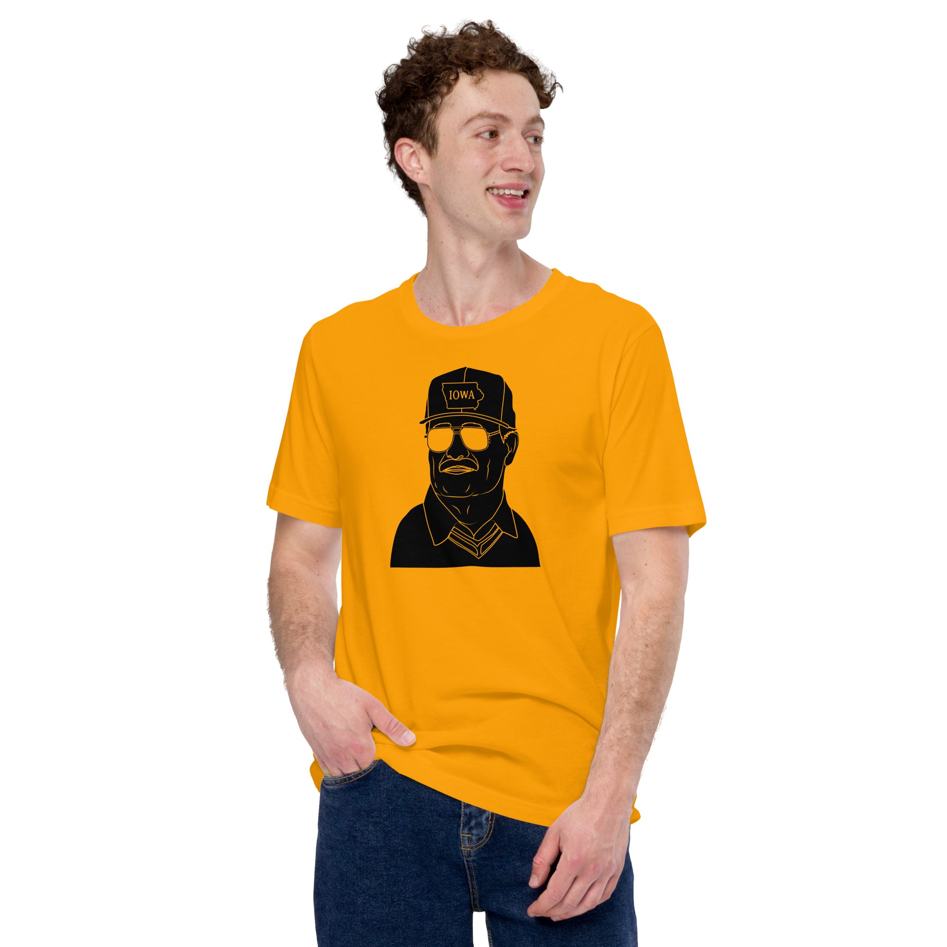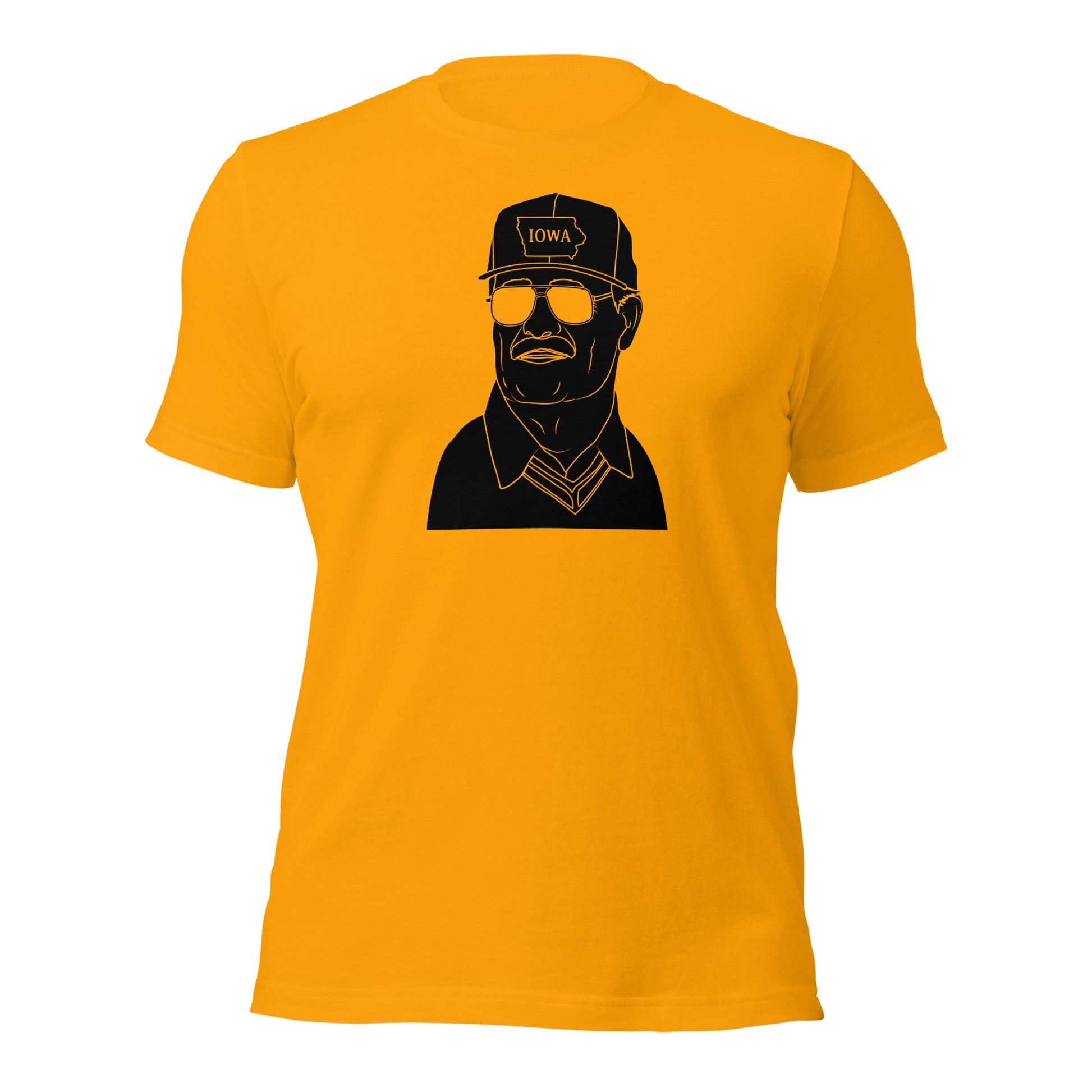 Celebrate the legendary legacy of the University of Iowa Hawkeyes and honor one of the most iconic coaches in college football history with our premium "The Hayden" t-shirt. This striking design features a powerful silhouette of Coach Fry, capturing his unmistakable presence and the indelible mark he left on the Iowa football program.