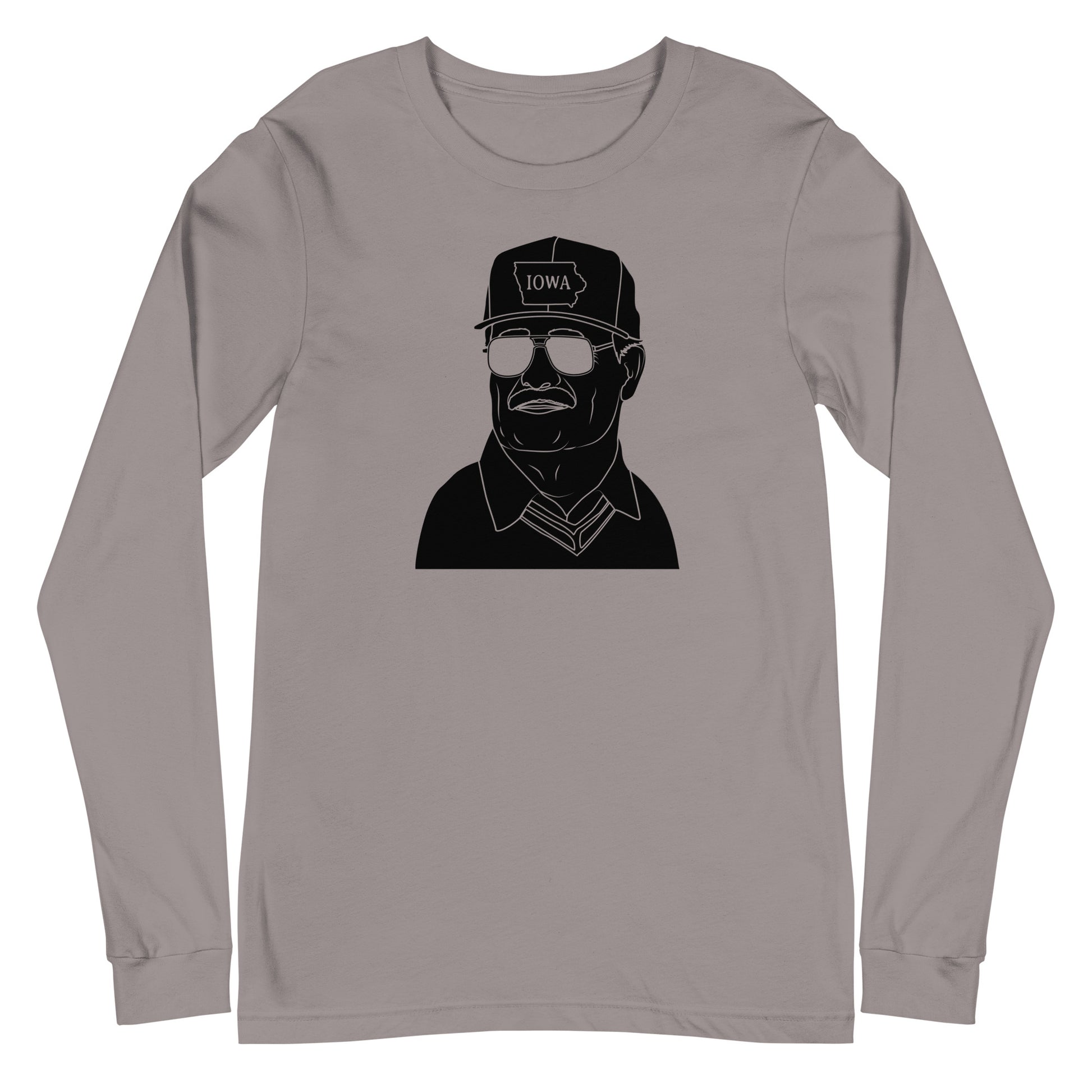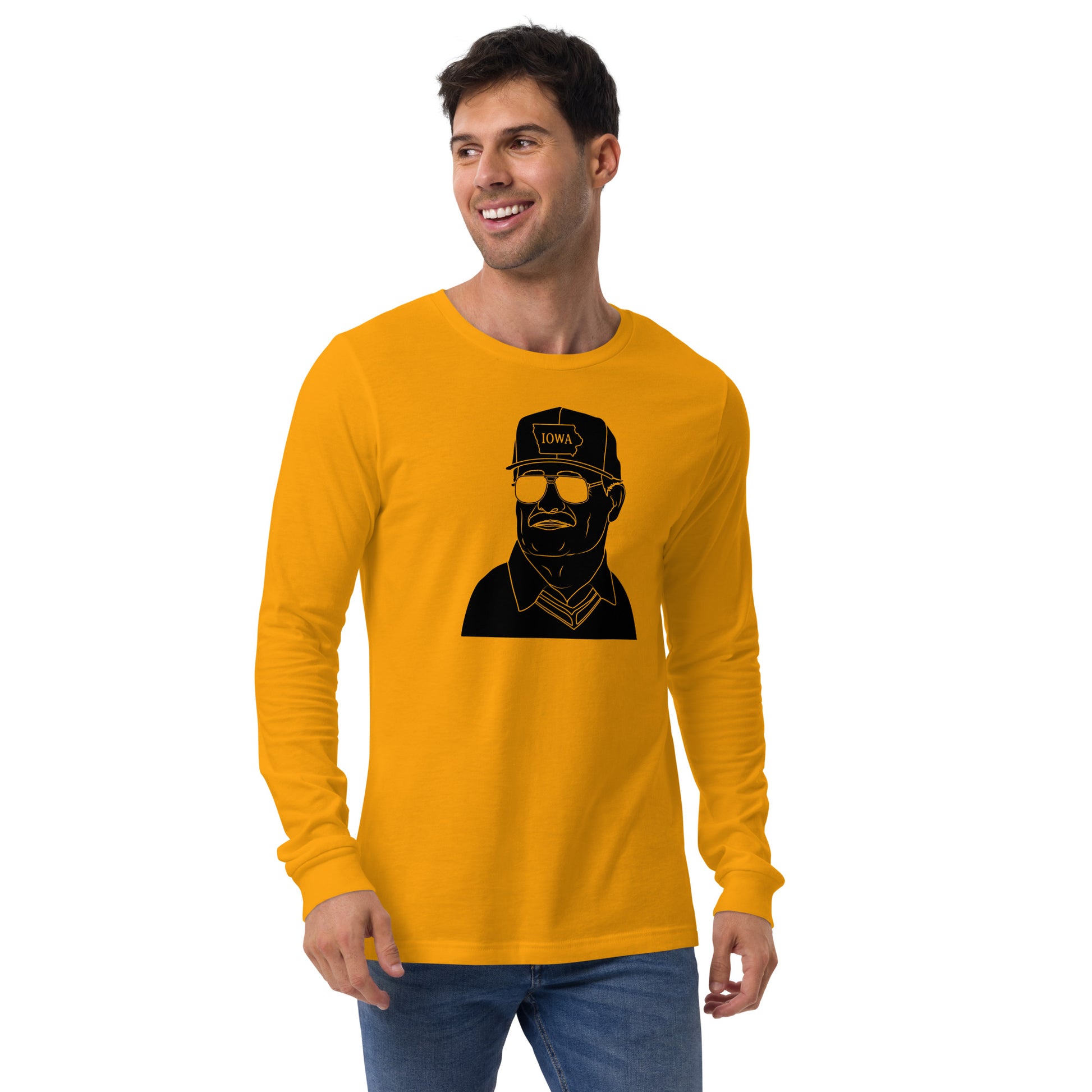 Celebrate the legendary legacy of the University of Iowa Hawkeyes and honor one of the most iconic coaches in college football history with our premium "The Hayden" long sleeve t-shirt. This striking design features a powerful silhouette of Coach Fry, capturing his unmistakable presence and the indelible mark he left on the Iowa football program.