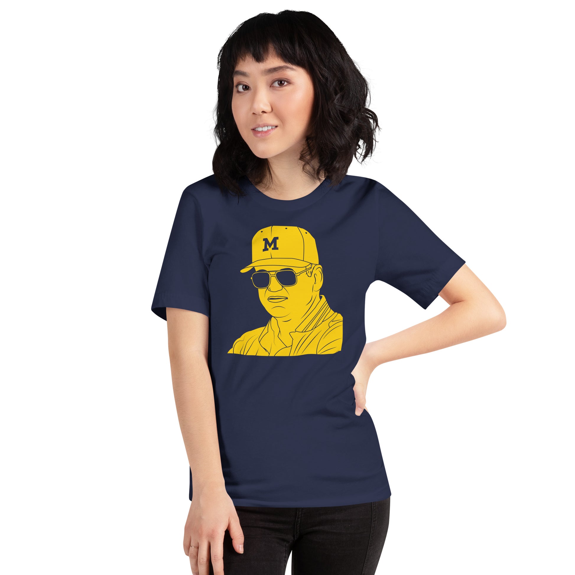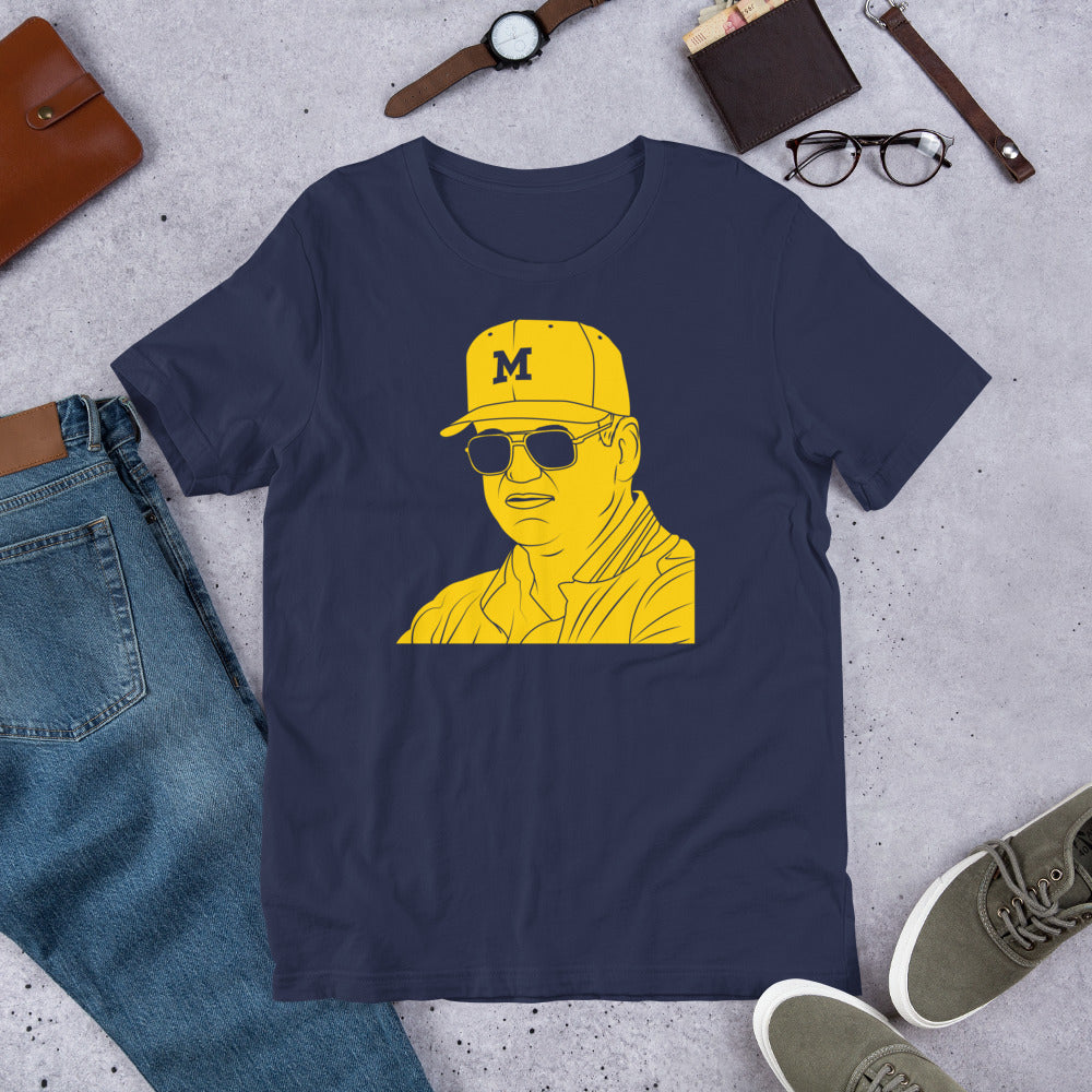 Whether you're cheering on the Wolverines at the Big House, tailgating with fellow fans, or simply want to showcase your Michigan pride, this Bo Schembechler t-shirt is a must-have addition to your game day wardrobe. The eye-catching design is sure to spark conversations and connect you with other passionate Michigan supporters who share your appreciation for the Wolverines' storied football history.