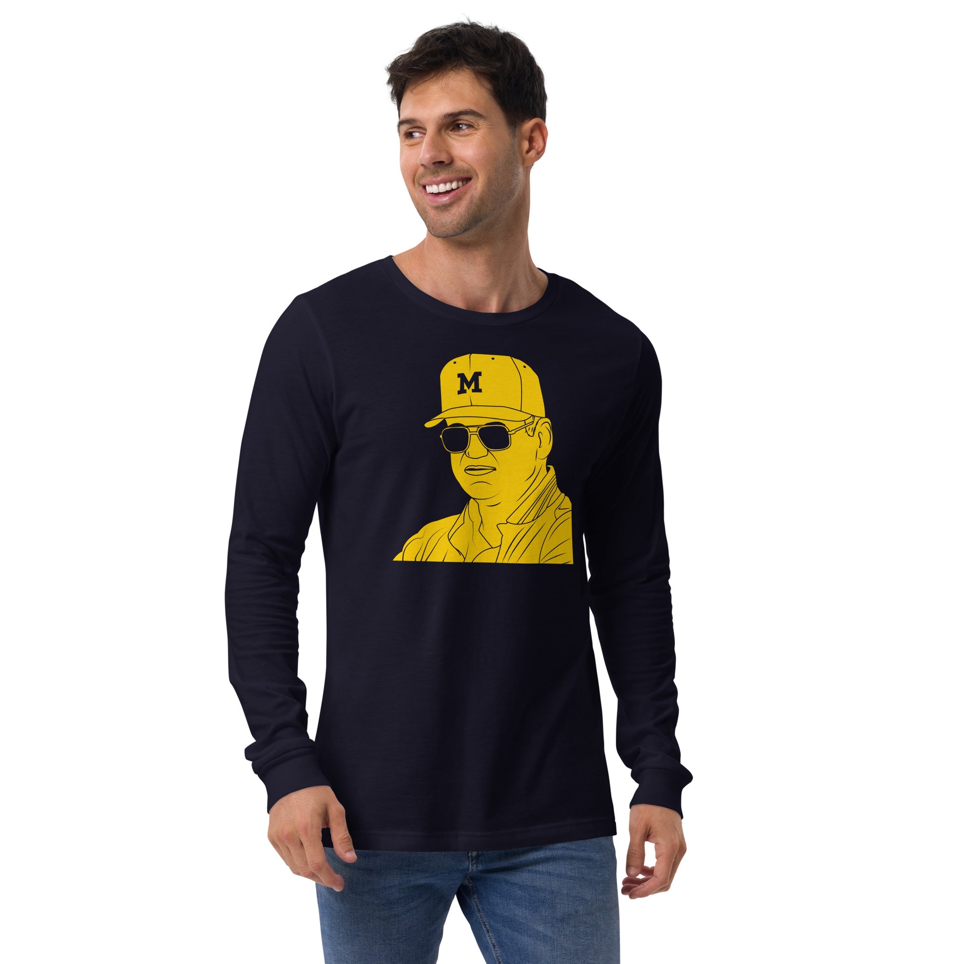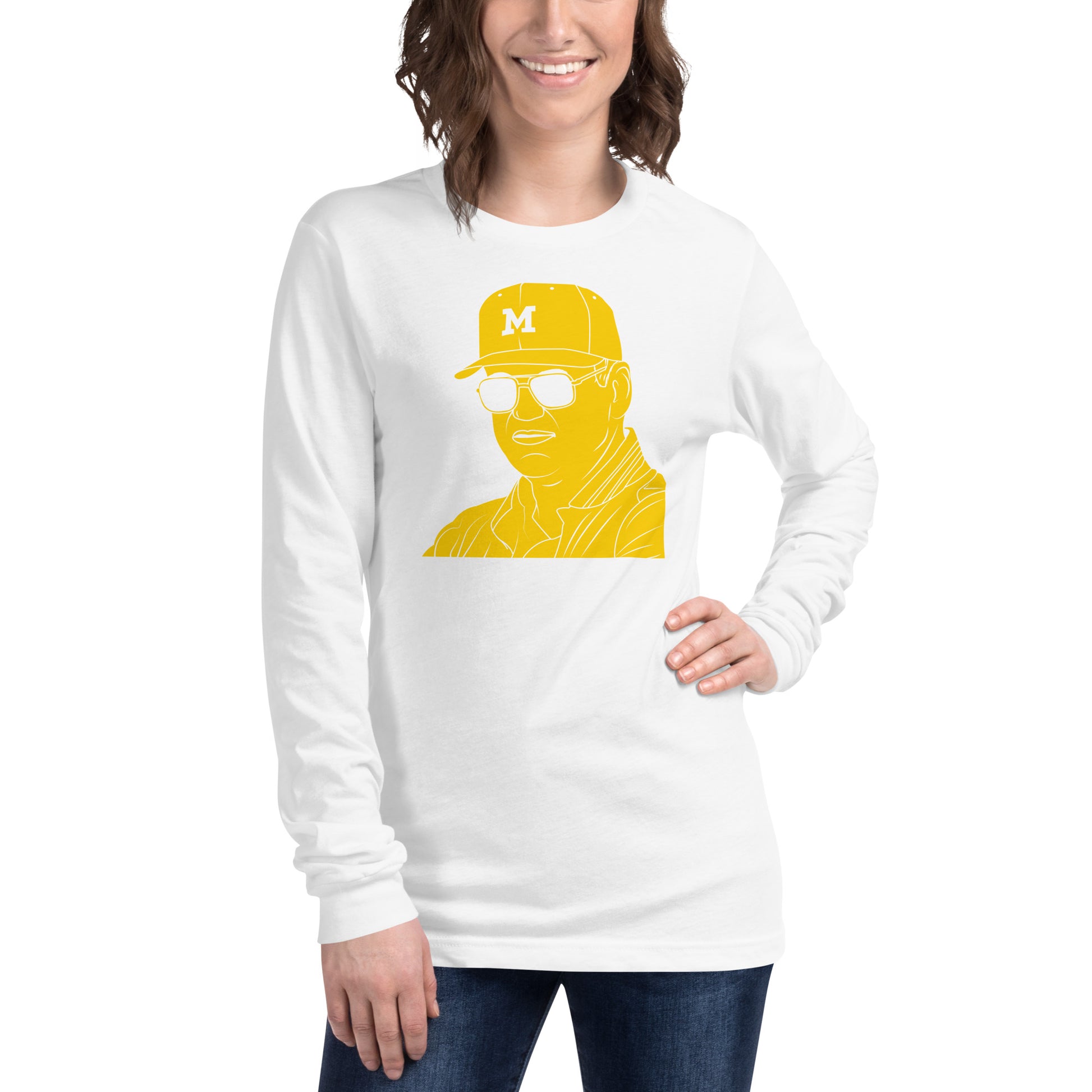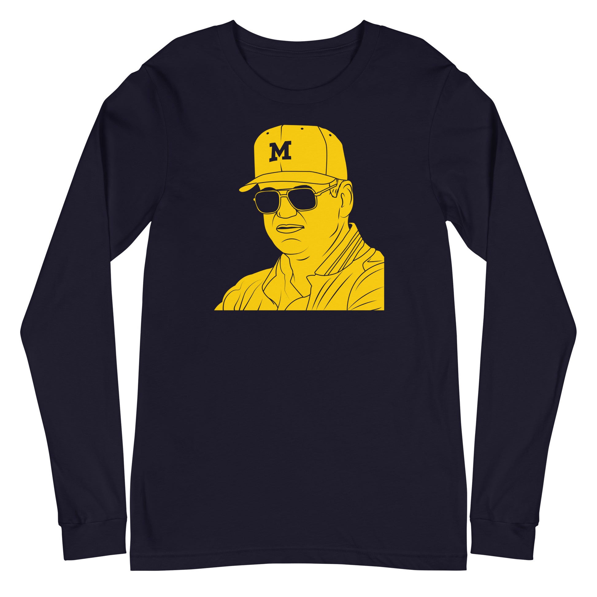 Whether you're cheering on the Wolverines at the Big House, tailgating with fellow fans, or simply want to showcase your Michigan pride, this Bo Schembechler long sleeve t-shirt is a must-have addition to your game day wardrobe. The eye-catching design is sure to spark conversations and connect you with other passionate Michigan supporters who share your appreciation for the Wolverines' storied football history.