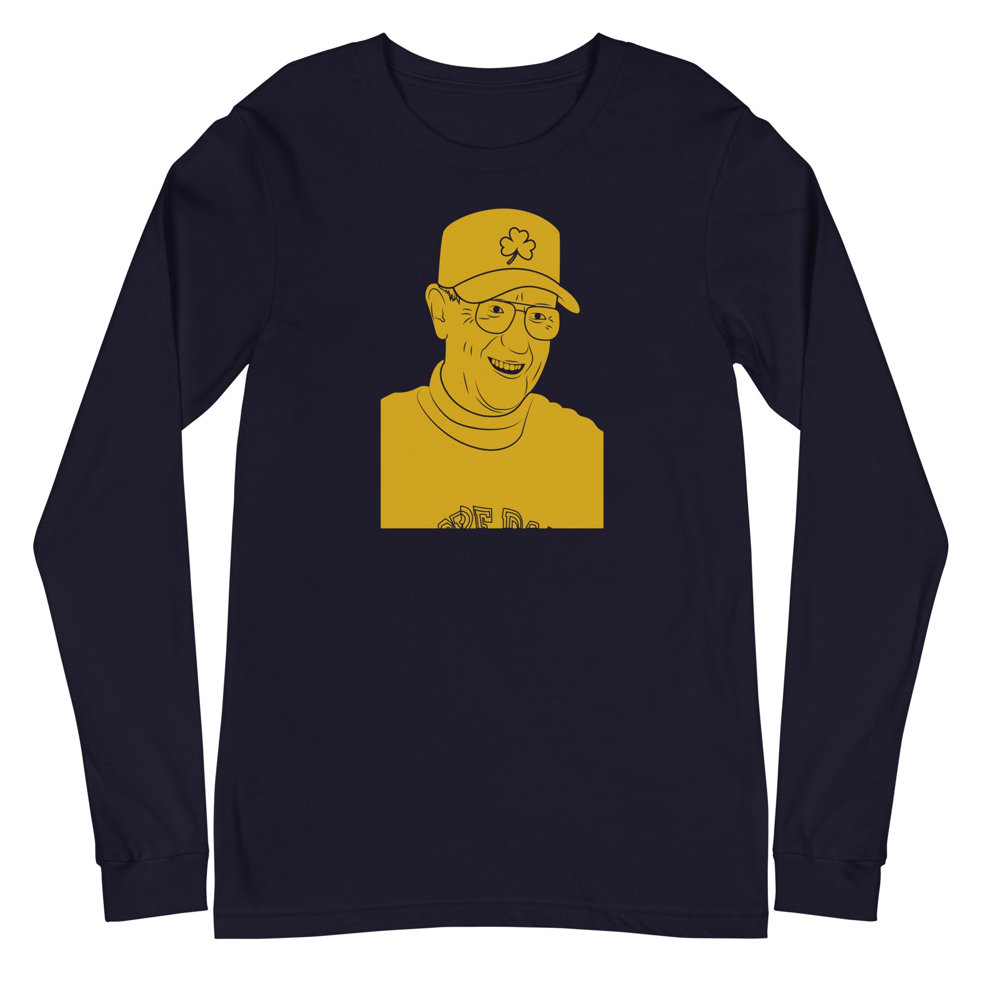 Don't miss your chance to own a piece of Notre Dame football legacy and honor the incomparable Lou Holtz. Click "Add to Cart" now and secure your "The Lou" long sleeve t-shirt today. Wear it with pride and let the world know that you stand with the Fighting Irish and the enduring spirit of Coach Holtz. Order now and join generations of Notre Dame fans in celebrating the coach who forever exemplified the essence of Fighting Irish football!