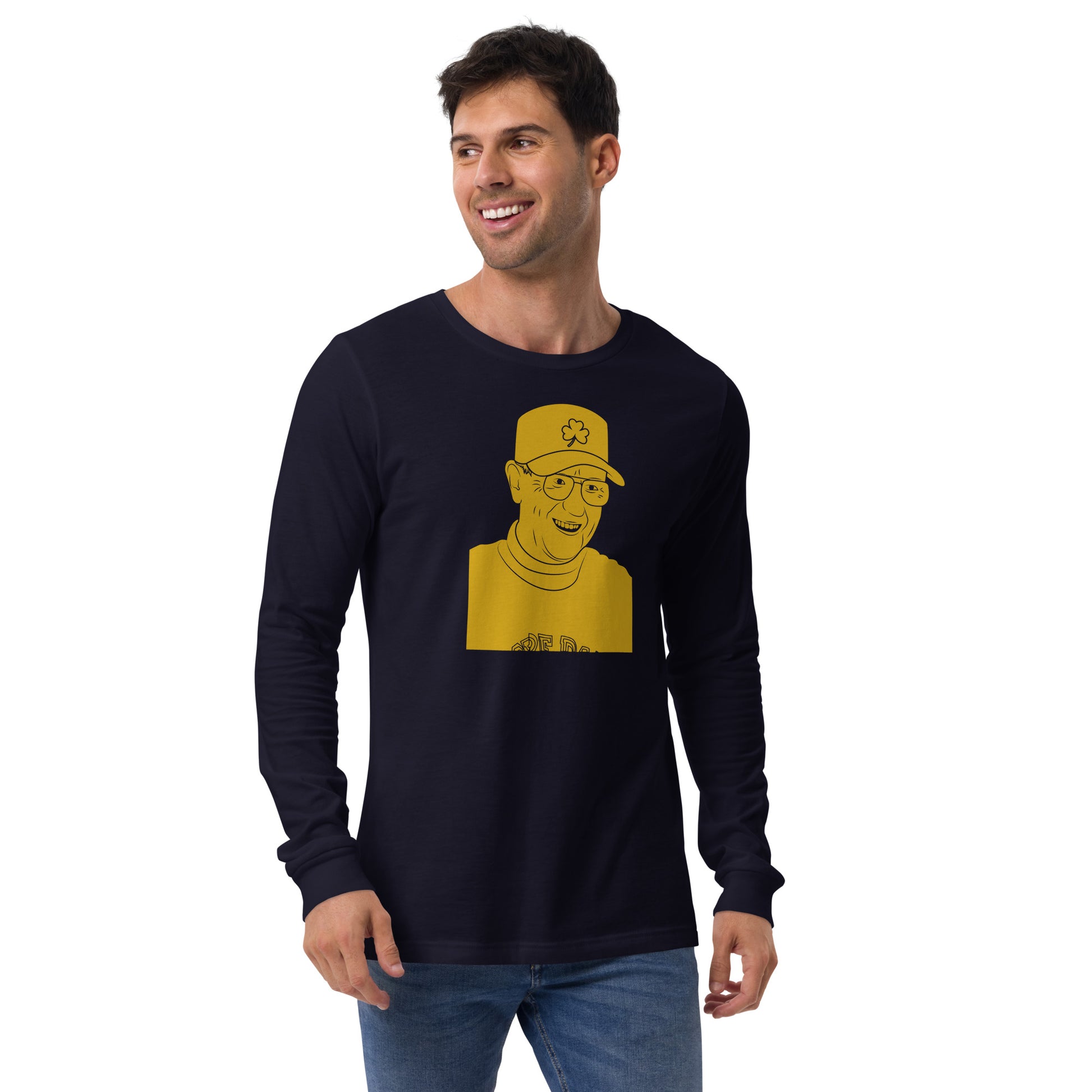 Celebrate the unparalleled legacy of the University of Notre Dame Fighting Irish and pay homage to one of the most iconic coaches in college football history with our premium "The Lou" long sleeve t-shirt. This powerful design features a striking silhouette of Coach Holtz, capturing his legendary presence and the indelible mark he left on the Notre Dame football program.