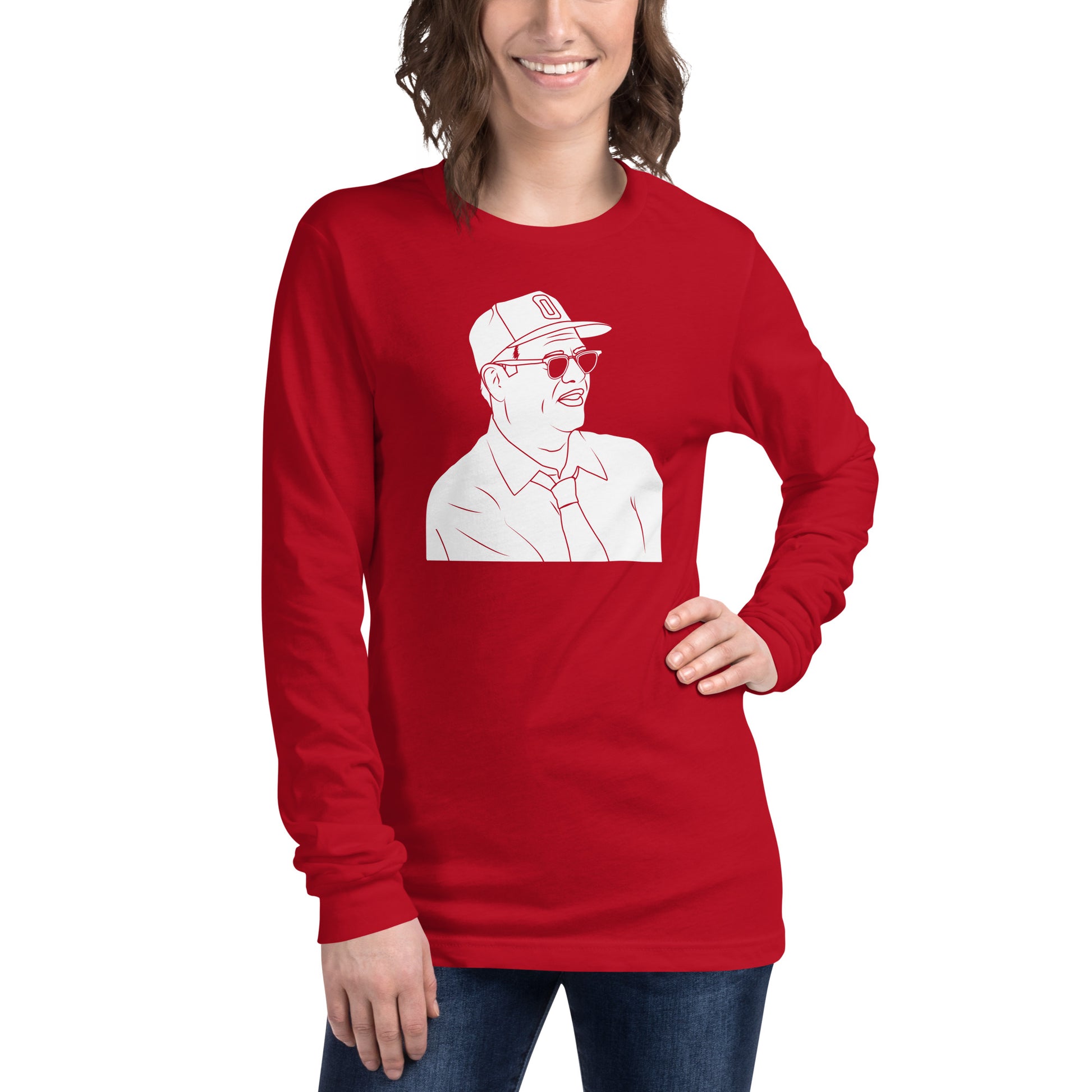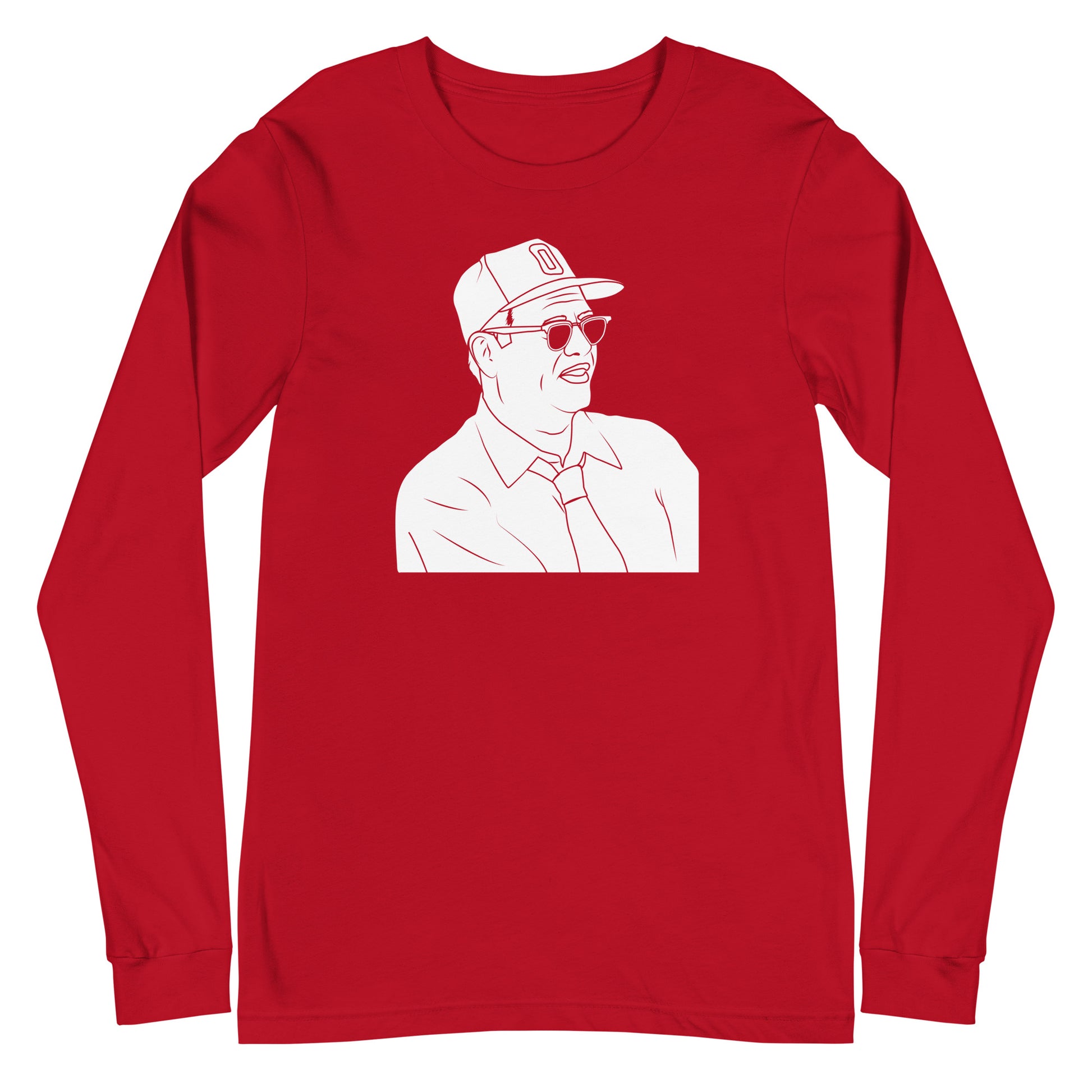 Celebrate the unparalleled legacy of The Ohio State University Buckeyes and honor one of the most legendary coaches in college football history with our premium "The Woody" long sleeve t-shirt. This iconic design features a striking silhouette of Coach Woody Hayes, capturing his fierce determination and the indelible mark he left on the Ohio State football program.