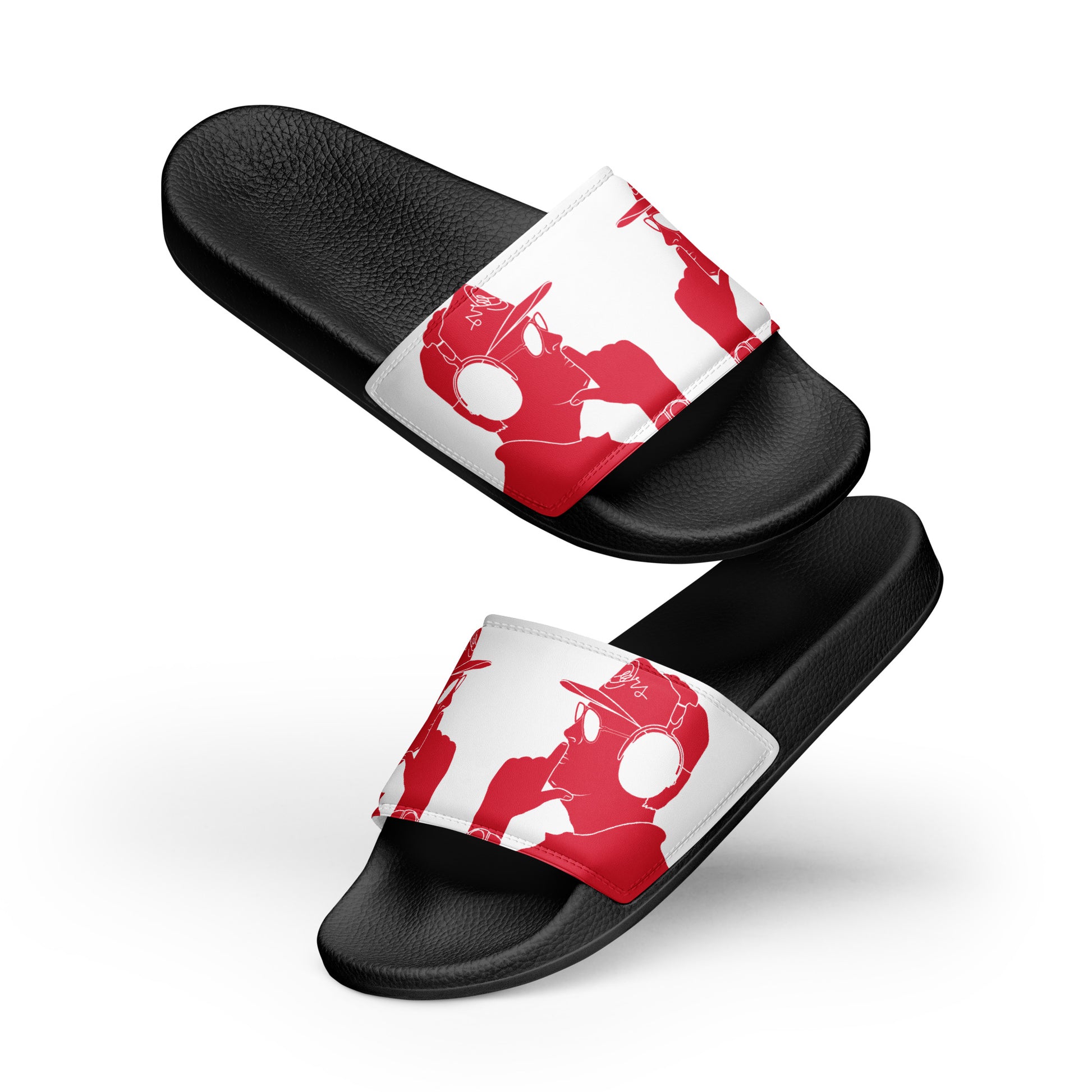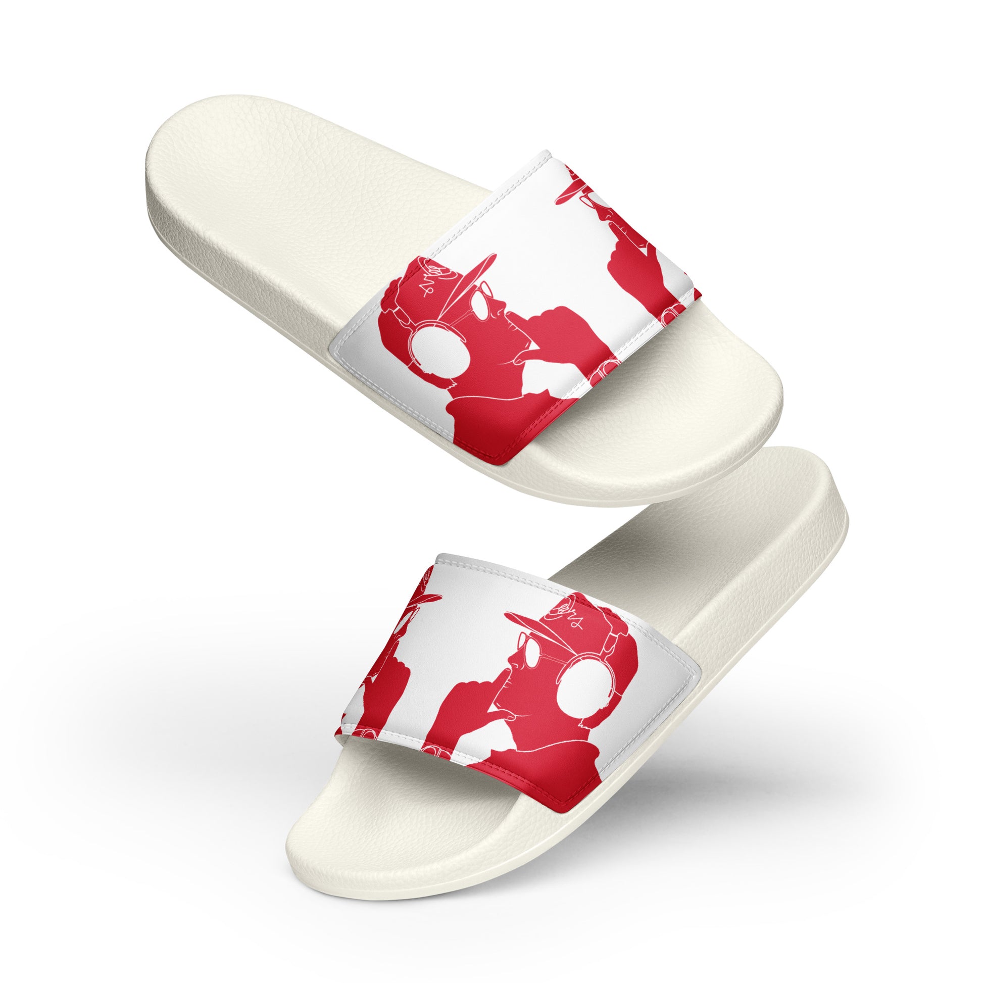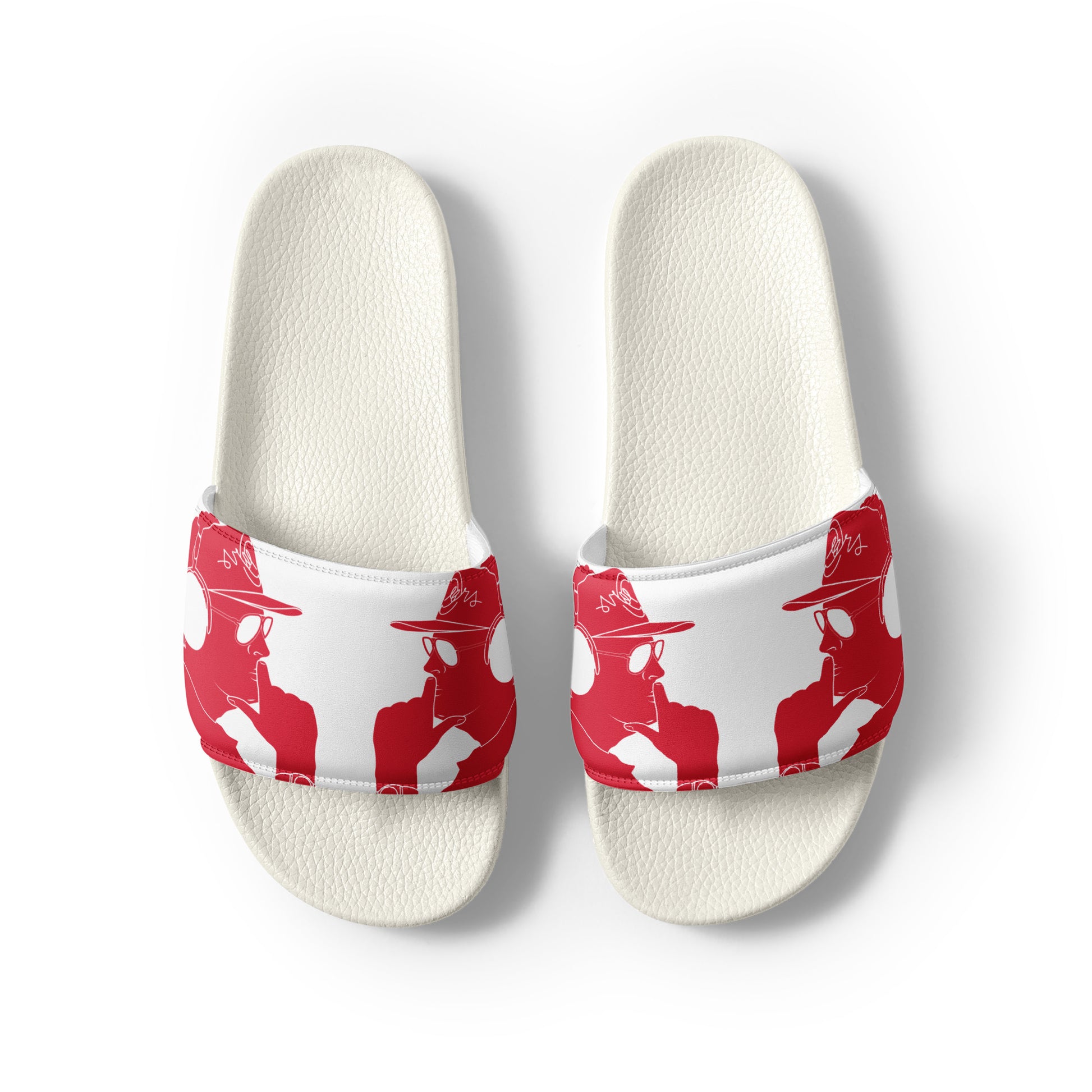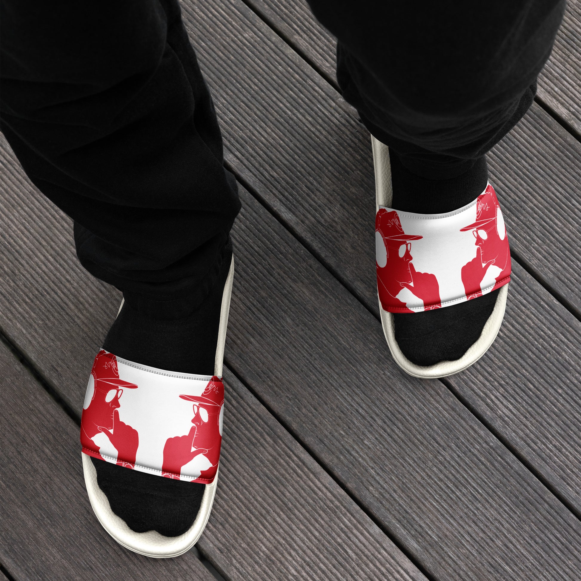 The striking design features a detailed rendering of Coach Osborne's silhouette prominently displayed on the strap, while the outline of Nebraska serves as a bold accent on the footbed, emphasizing the deep-rooted connection between the coach, the university, and the Cornhusker State. The classic scarlet and cream color scheme, synonymous with Nebraska athletics, ensures that your allegiance to the Huskers is unmistakable.
