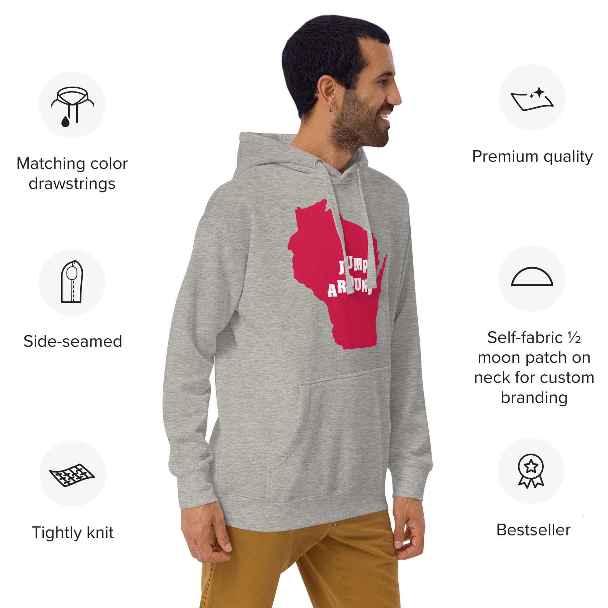 Whether you're joining the sea of red and white at Camp Randall, tailgating with fellow Badgers, or simply want to showcase your Wisconsin pride during chilly months, this "Jump Around" hoodie is a must-have addition to your game day wardrobe. The eye-catching design is sure to spark conversations and connect you with other passionate Wisconsin fans who share your love for this cherished tradition.