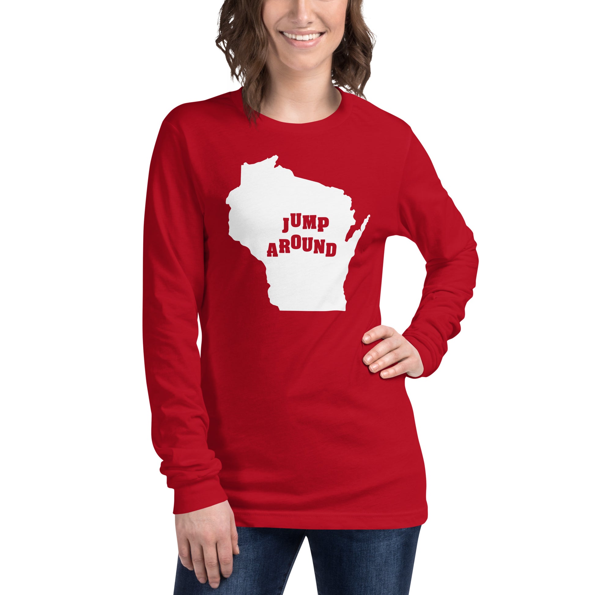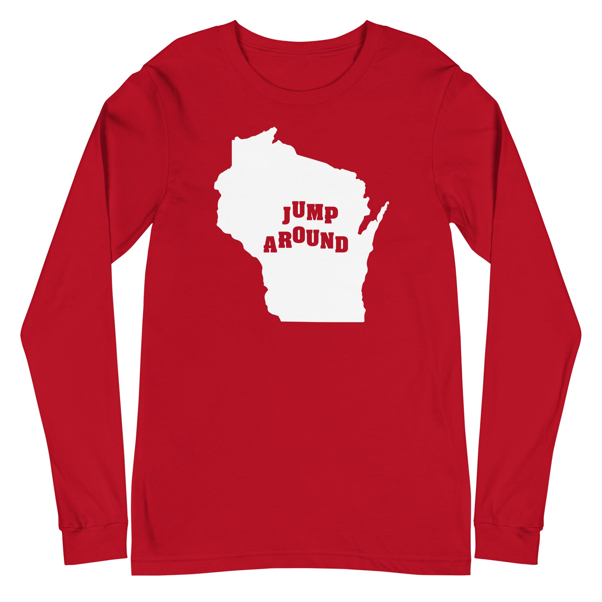 Whether you're joining the sea of red and white at Camp Randall, tailgating with fellow Badgers, or simply want to showcase your Wisconsin pride, this "Jump Around" long sleeve t-shirt is a must-have addition to your game day wardrobe. The eye-catching design is sure to spark conversations and connect you with other passionate Wisconsin fans who share your love for this cherished tradition.