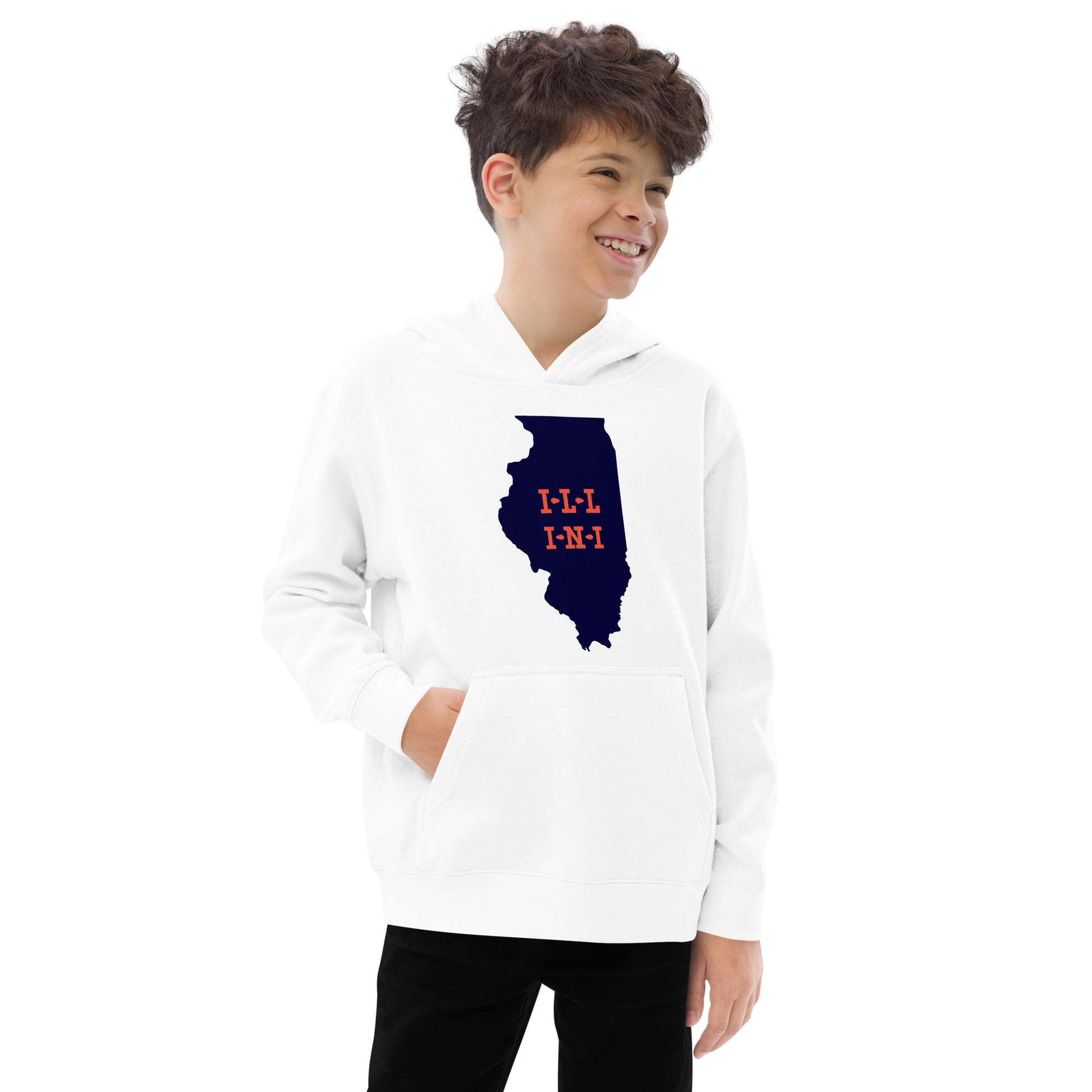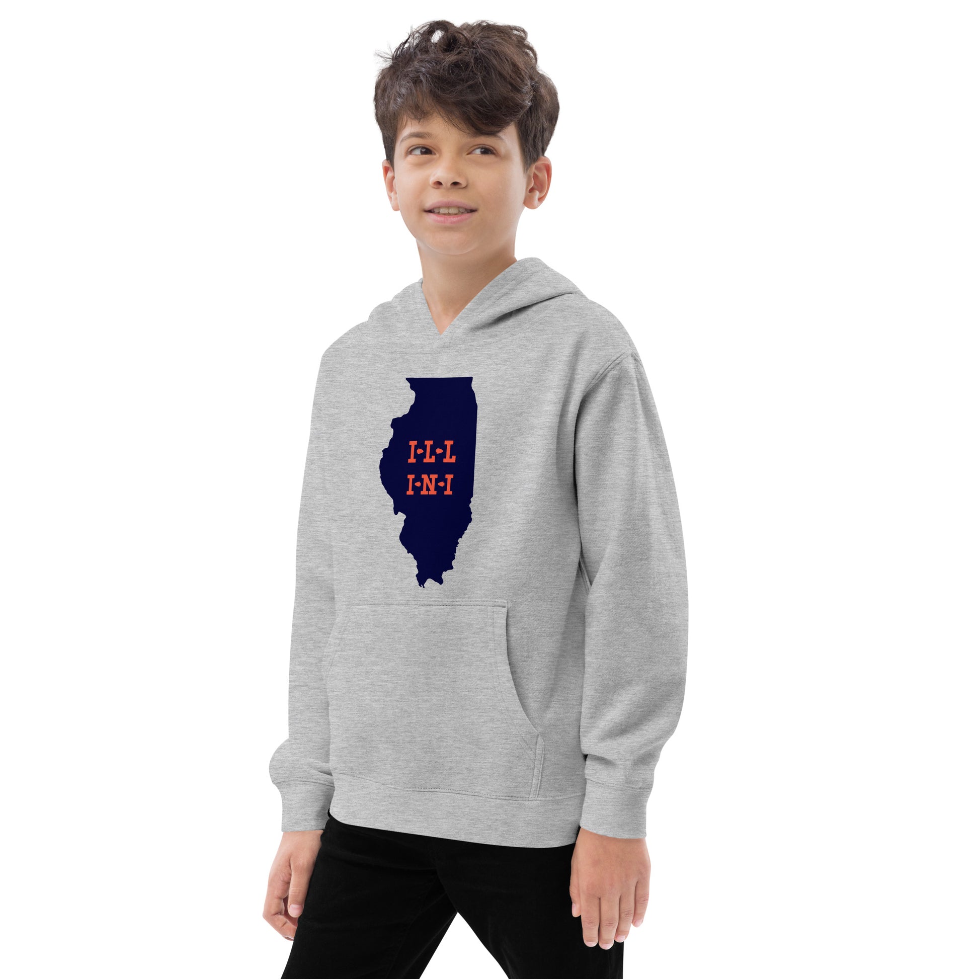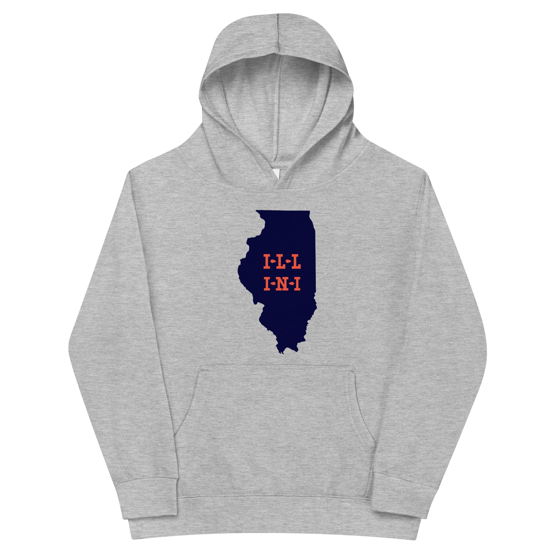 Wrap your young Illini fan in warmth and tradition with our premium youth "I-L-L, I-N-I" hoodie. This cozy and eye-catching design captures the essence of the iconic University of Illinois call-and-response cheer, featuring the beloved "I-L-L" and "I-N-I" text artfully arranged within the proud outline of Illinois, perfectly showcasing the university's deep-rooted connection to the Prairie State.