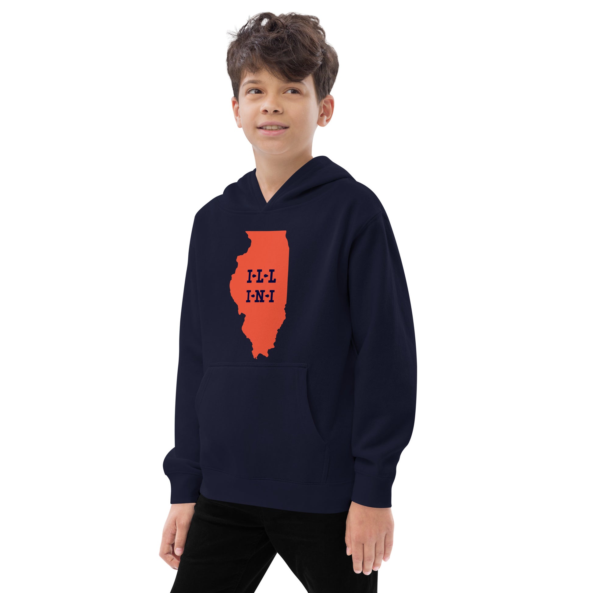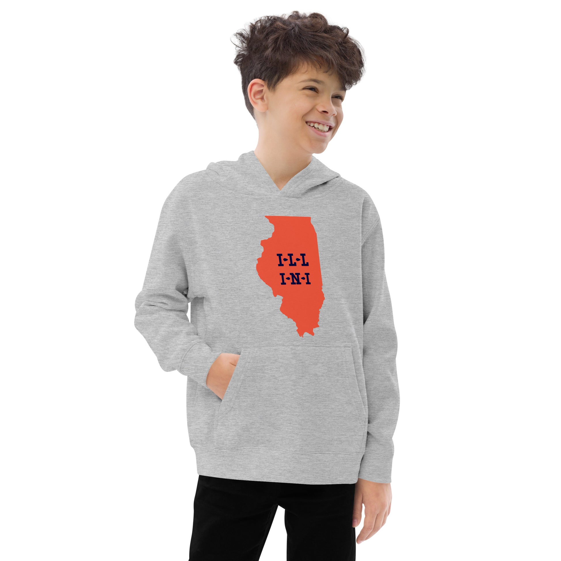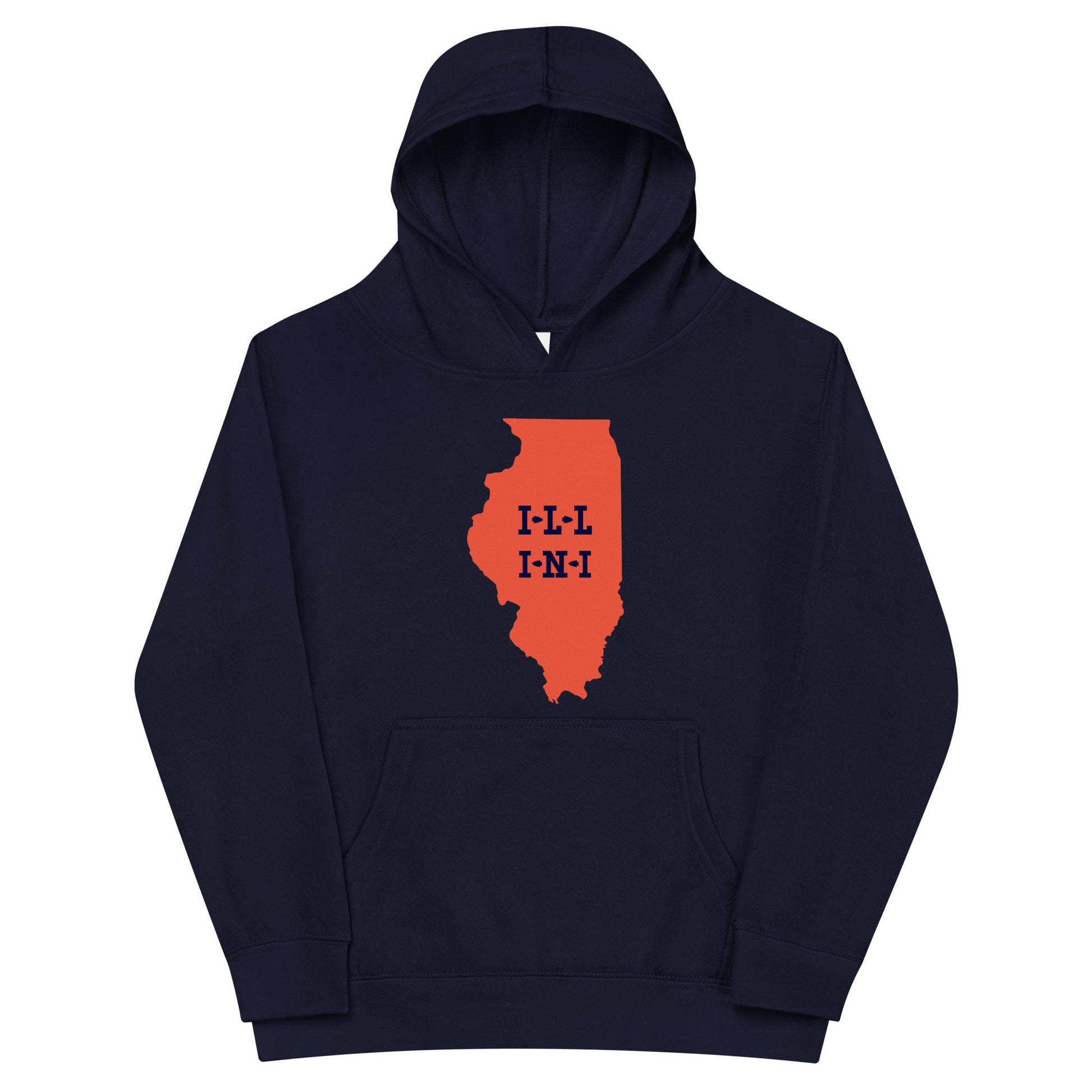 Wrap your young Illini fan in warmth and tradition with our premium youth "I-L-L, I-N-I" hoodie. This cozy and eye-catching design captures the essence of the iconic University of Illinois call-and-response cheer, featuring the beloved "I-L-L" and "I-N-I" text artfully arranged within the proud outline of Illinois, perfectly showcasing the university's deep-rooted connection to the Prairie State.