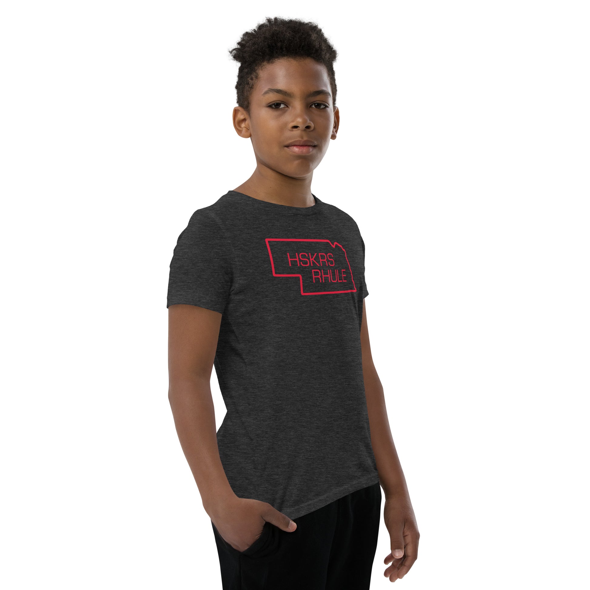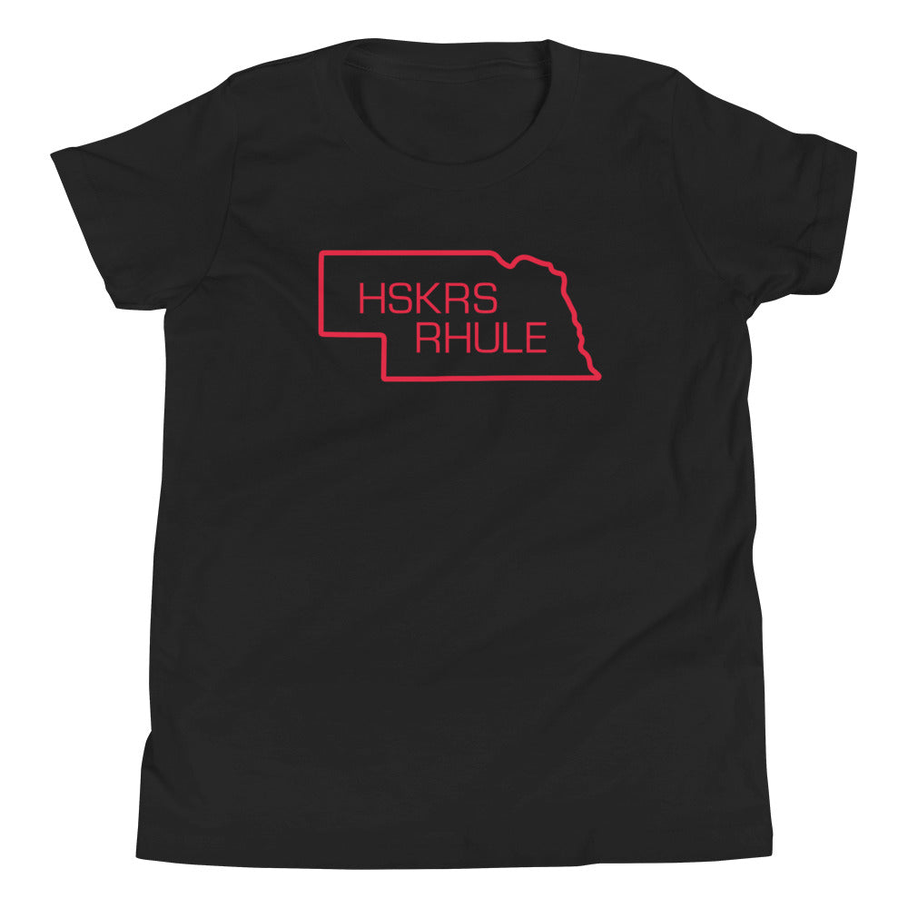 Don't miss this opportunity to invest in your child's happiness and love for the Huskers. Click "Add to Cart" now and secure their very own "HSKRS RHULE" Youth T-Shirt. By ordering today, you're gifting your child more than just a t-shirt; you're providing them with a tangible connection to the pride and tradition of Nebraska football, as well as its exciting future. Imagine the excitement they'll feel wearing this t-shirt to their first game in Lincoln, or how it will fuel their dreams of future Husker glory. Act now and give your little one the gift of Nebraska pride – it's an investment in memories and a lifelong connection to the Husker Nation!