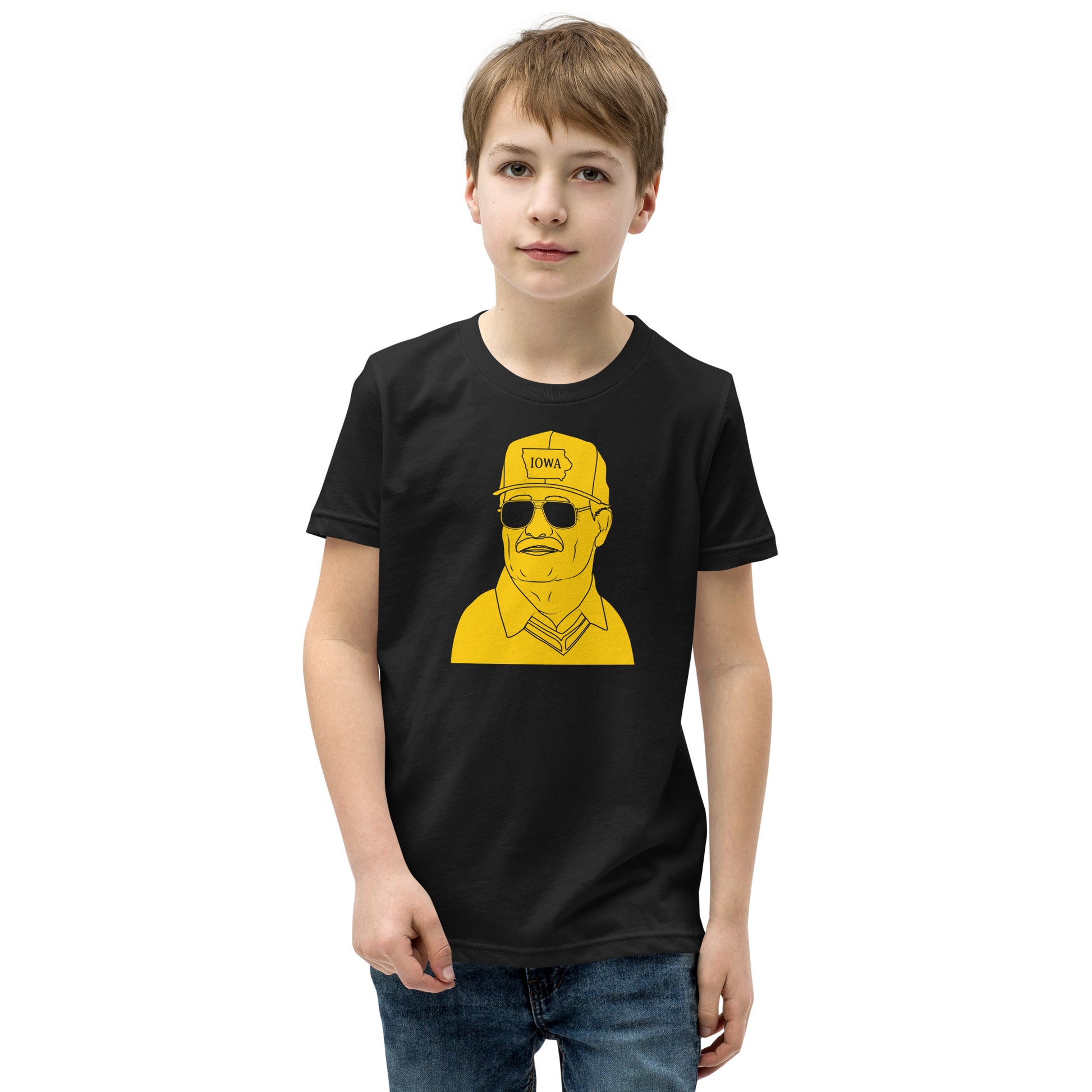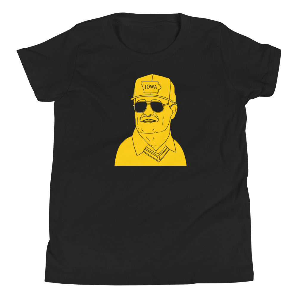 Inspire your little Hawkeye with the legacy of Iowa football greatness through our premium youth "The Hayden" t-shirt, featuring the iconic silhouette of legendary Coach Hayden Fry. This eye-catching design captures the essence of Hawkeye football tradition, making it the perfect way to pass down Iowa pride to the next generation.