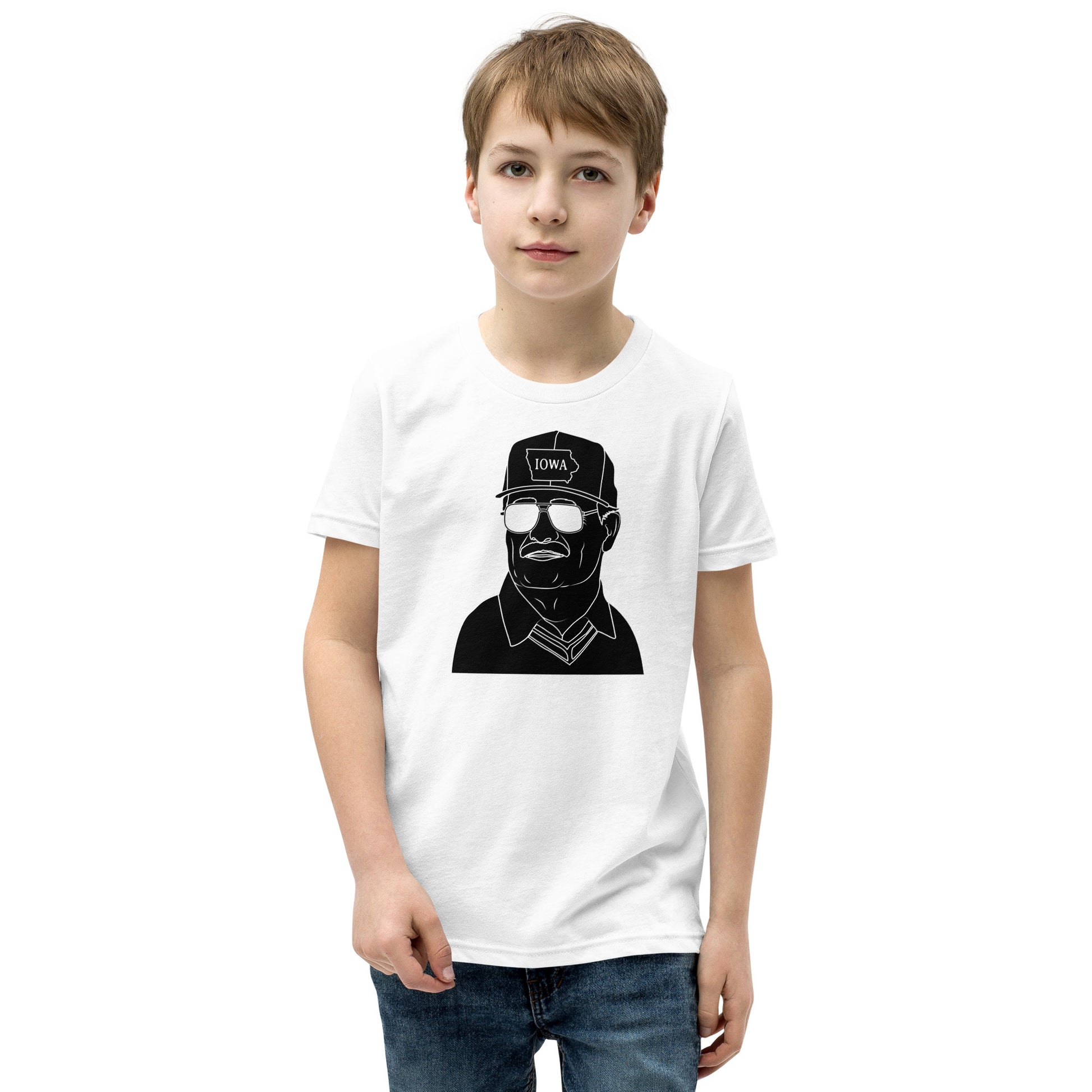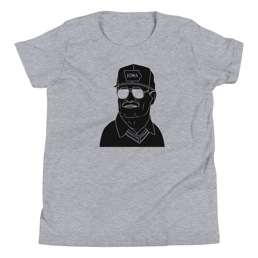 Inspire your little Hawkeye with the legacy of Iowa football greatness through our premium youth "The Hayden" t-shirt, featuring the iconic silhouette of legendary Coach Hayden Fry. This eye-catching design captures the essence of Hawkeye football tradition, making it the perfect way to pass down Iowa pride to the next generation.