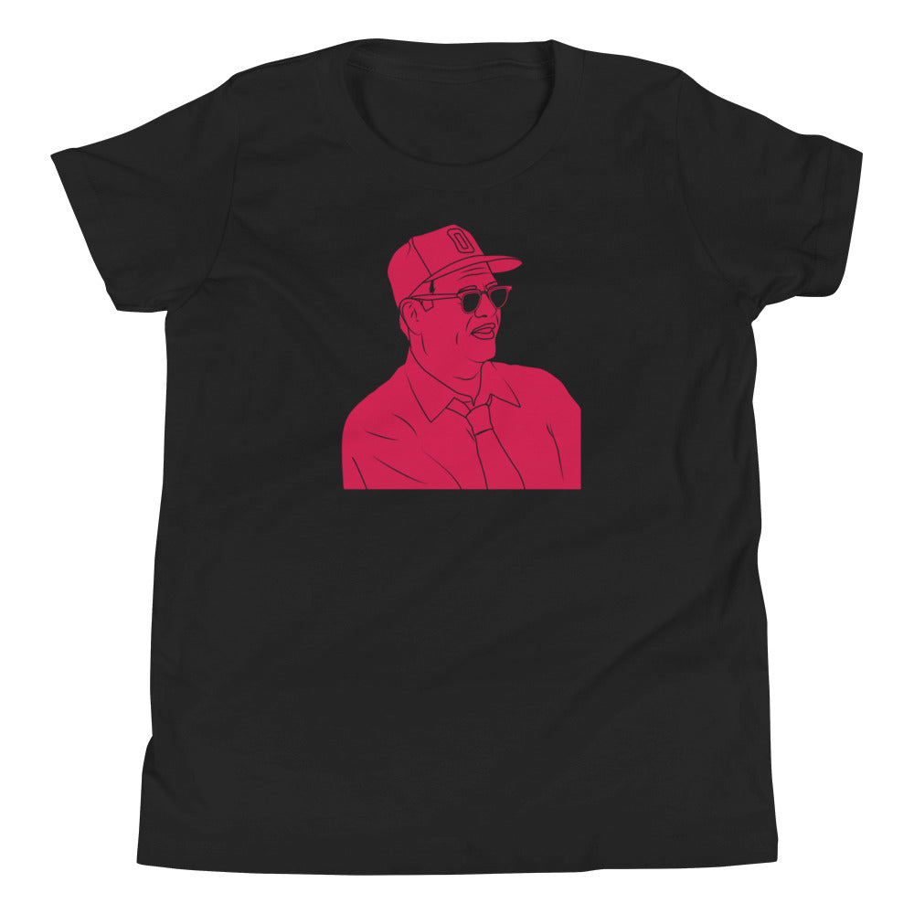 Introduce your little Buckeye to the unparalleled legacy of The Ohio State University and inspire them with our premium youth "The Woody" t-shirt. This iconic design features a striking silhouette of Coach Woody Hayes, capturing his fierce determination and the indelible mark he left on the Ohio State football program, making it the perfect way to pass down Buckeye pride to the next generation.